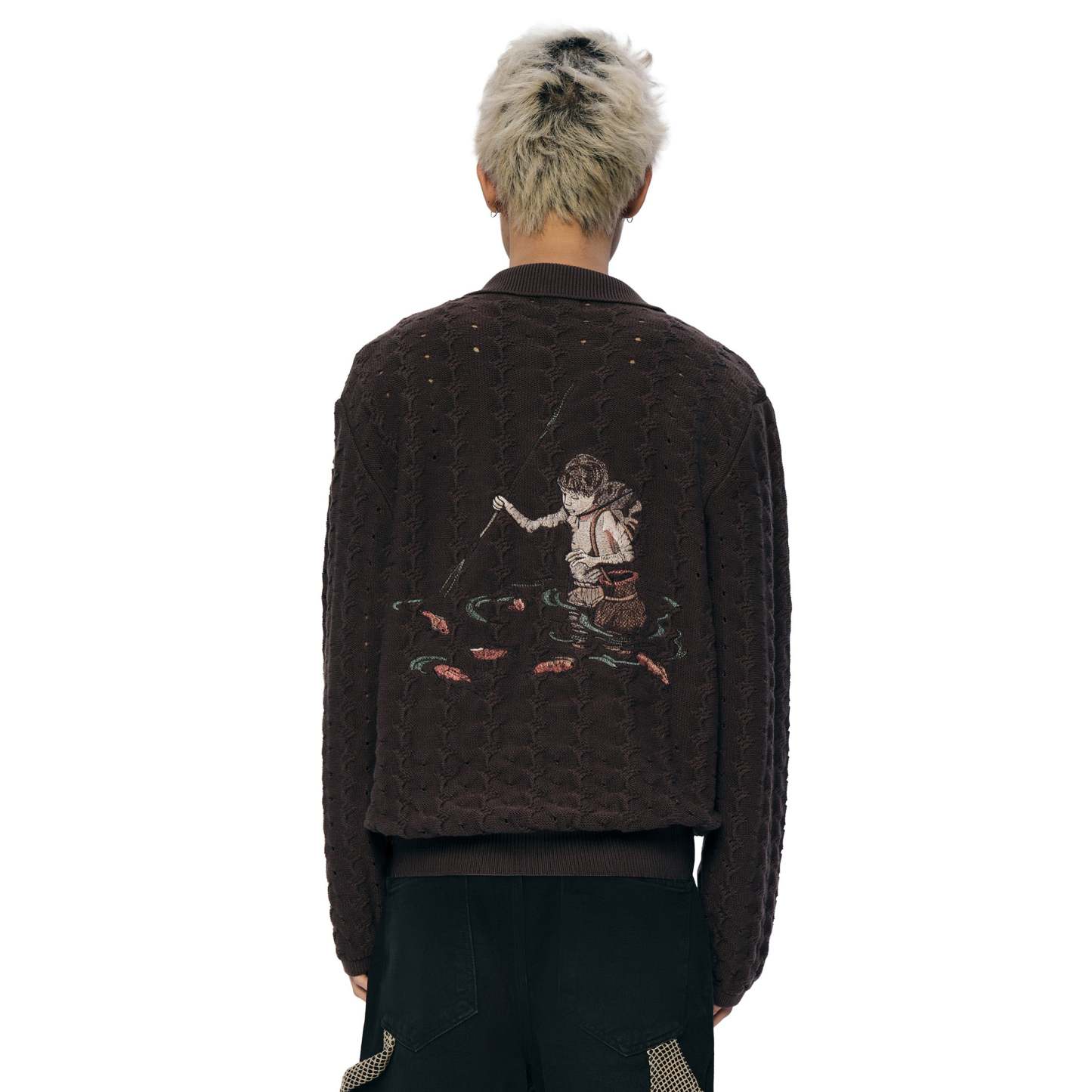 100% cotton / custom fishnet knitting / embroidery on front and back / fits true to size
