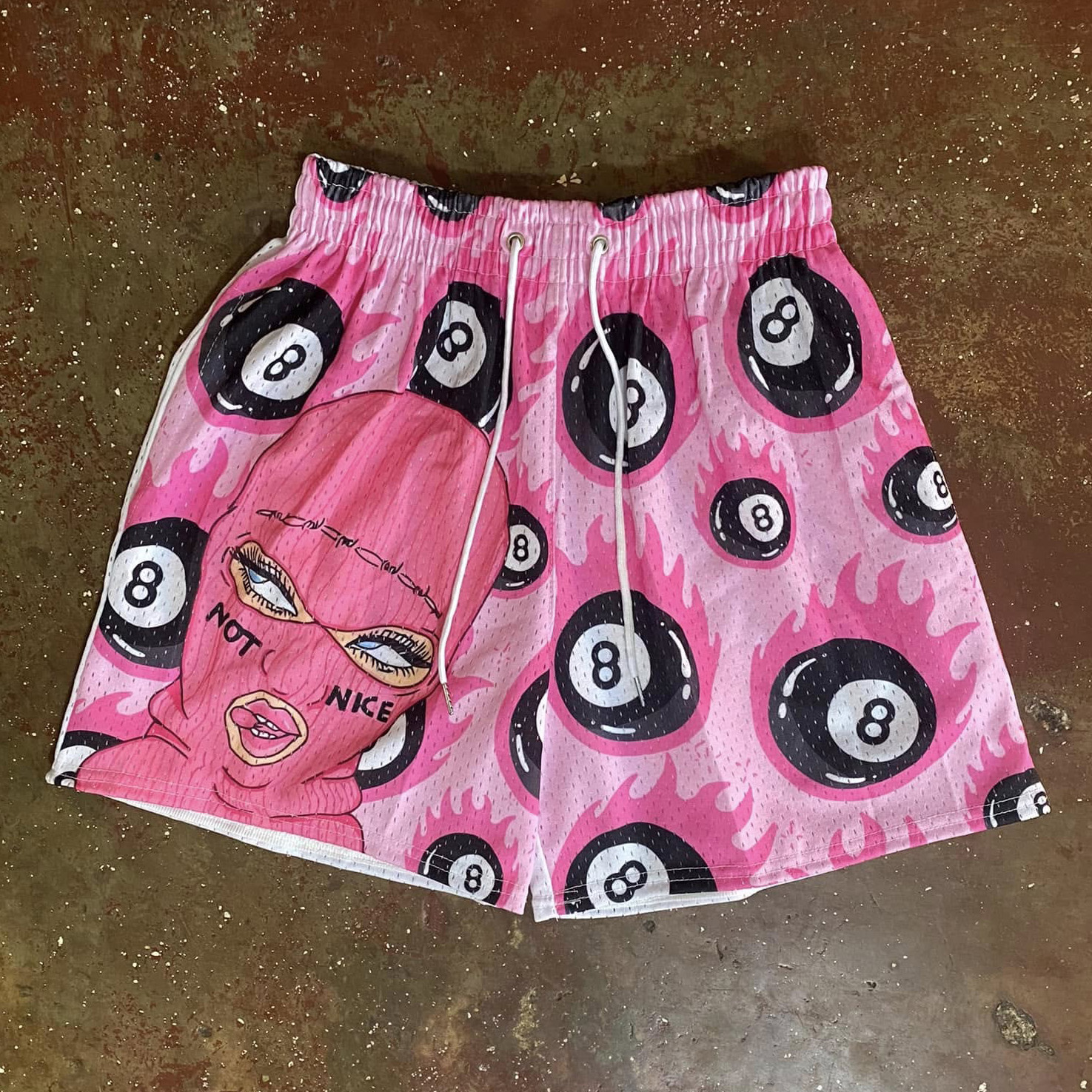 Mask Girl Billiards Print Mesh Sports Shorts