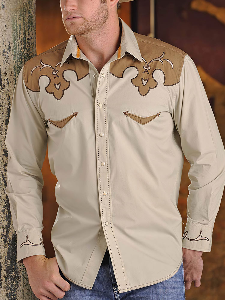 Men's casual vintage western long sleeve shirt