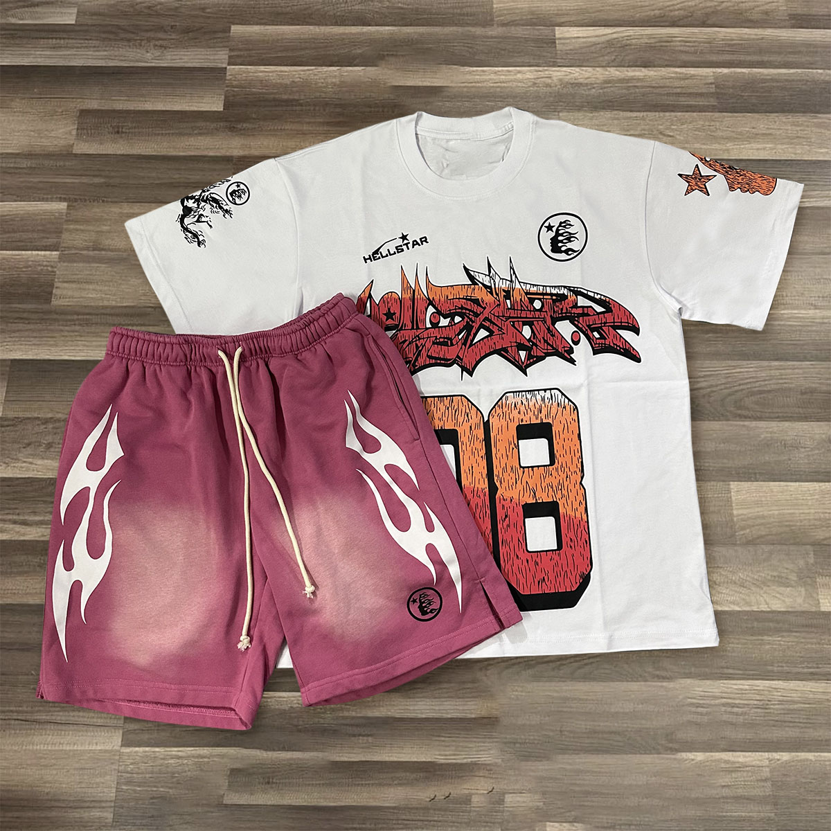 No.08 Print T-shirt Shorts Two-Piece Set