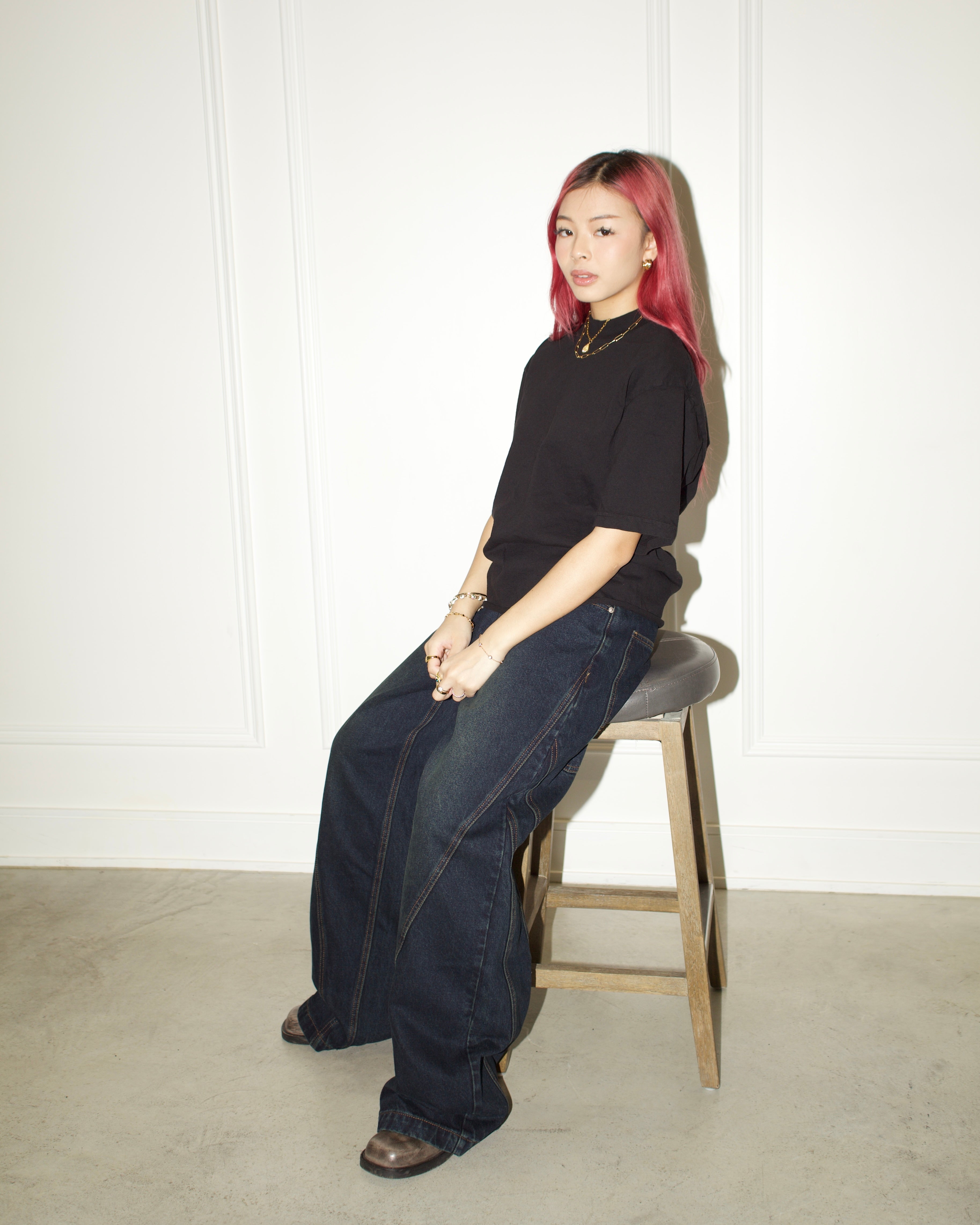 Model is 5'9 (179cm) and wearing size S for baggy fit. Female is 5'0 also wearing size S for extra baggy fit.