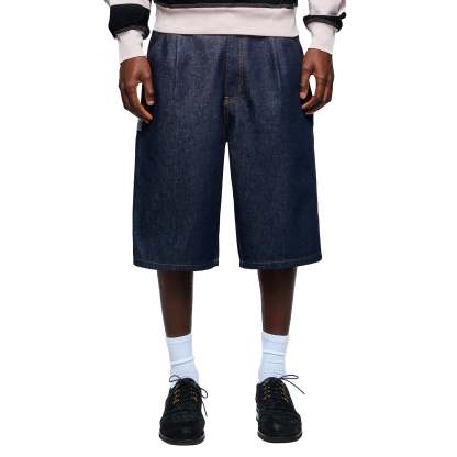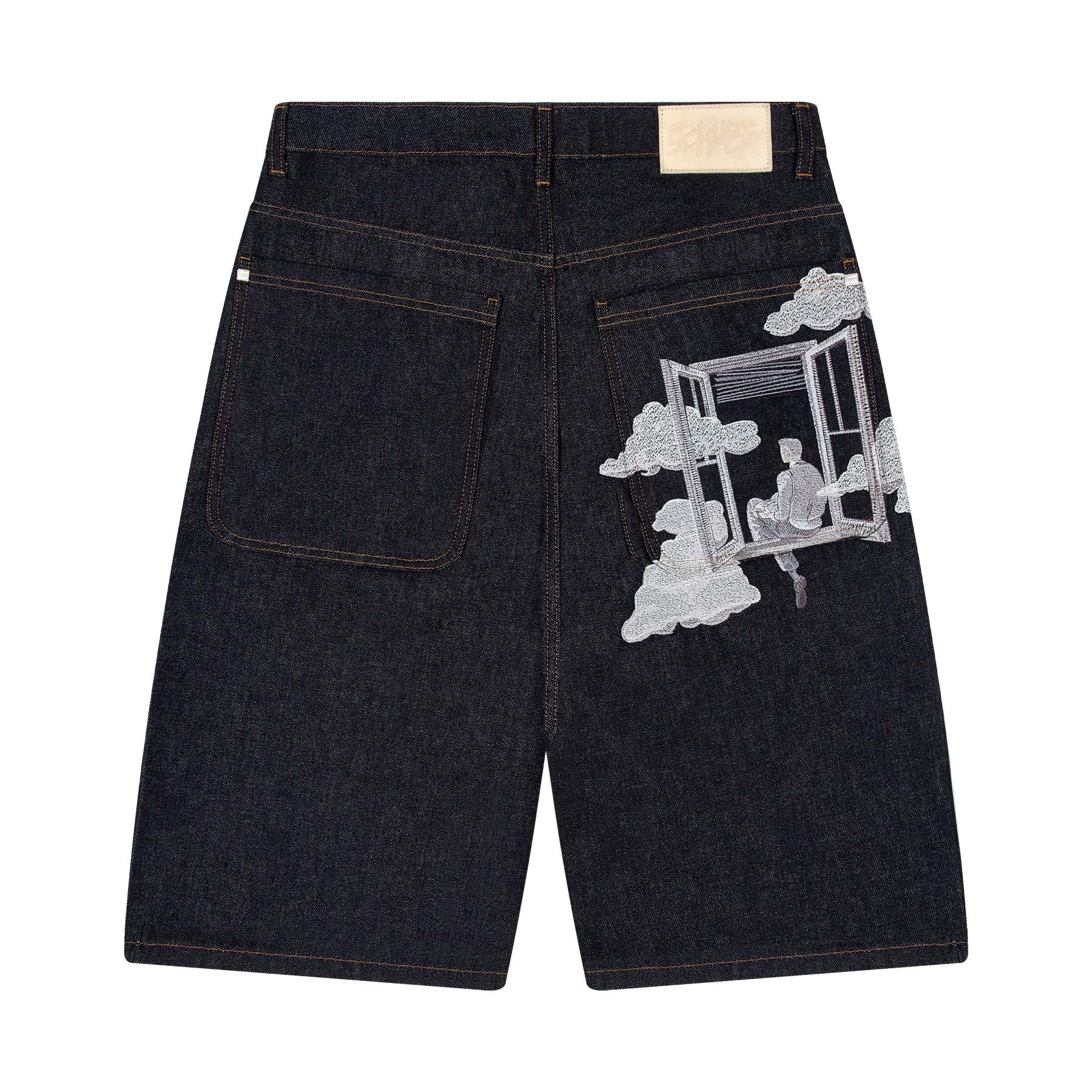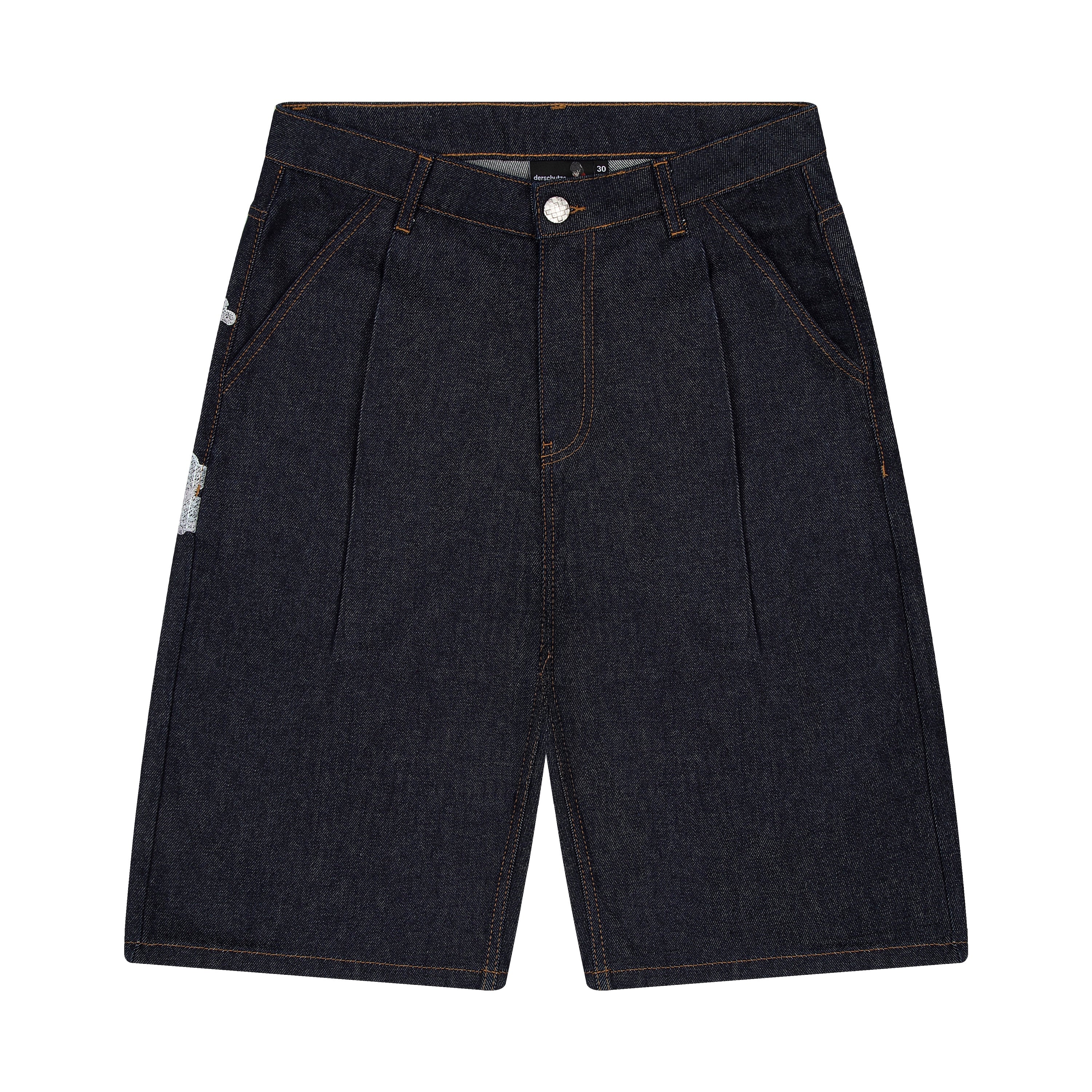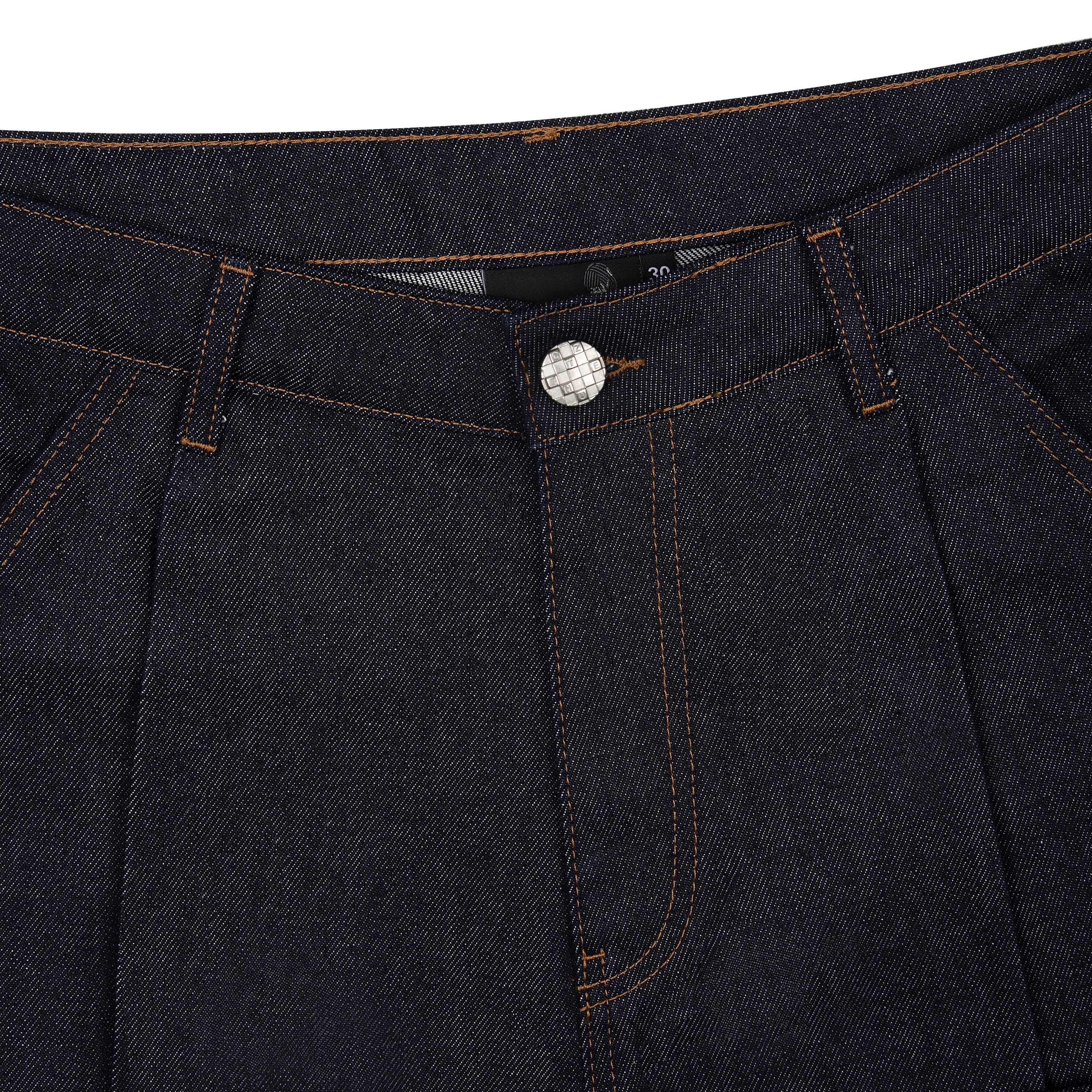 14,5oz raw denim / 100% cotton / embroidery on back / deboss printed leather patch / darts on front / custom button / fabric may bleed or fade, wash inside out in cold water to preserve color and character / fits true to size