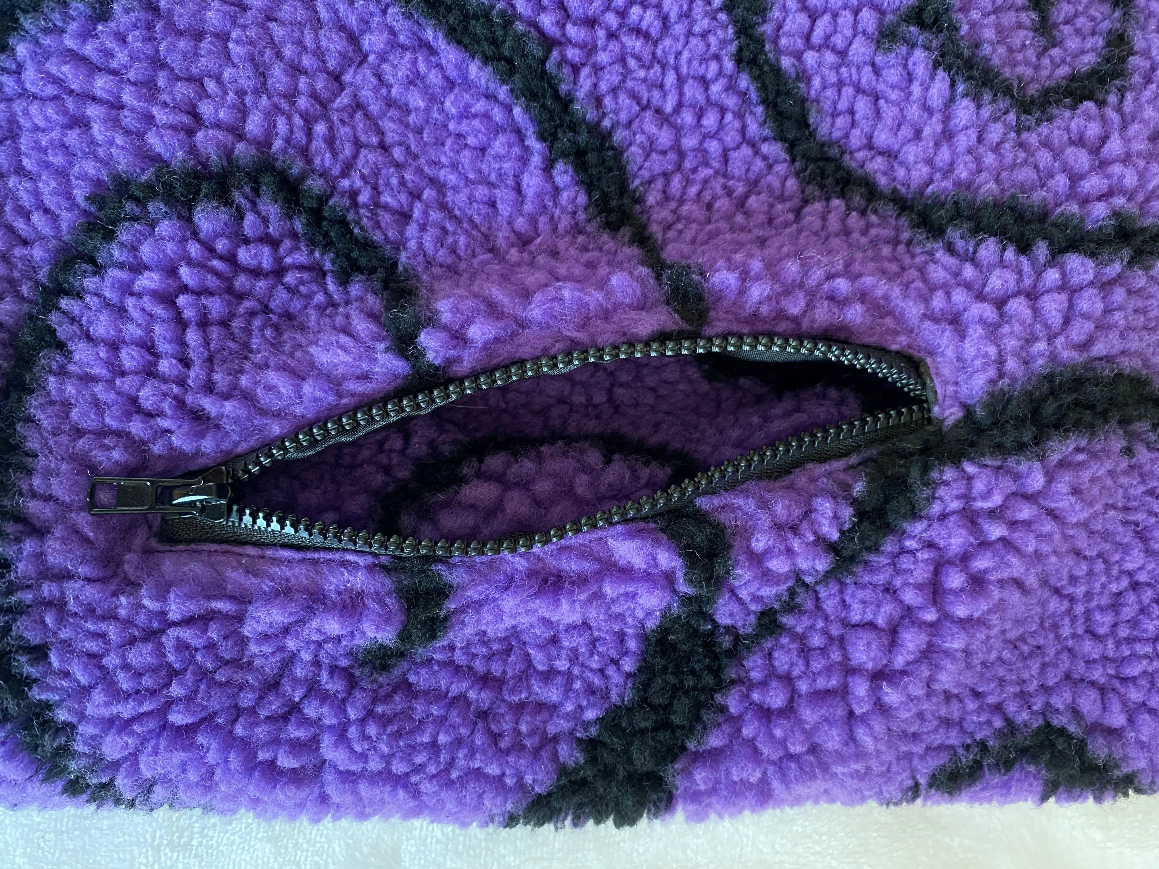 Gomu Gear 5th Half Zip Sherpa Hoodie with patterns and motifs from eichiro oda's one piece. Featuring a "gum gum" polyester sherpa fleece exterior and nylon interior, equipped with double pockets.