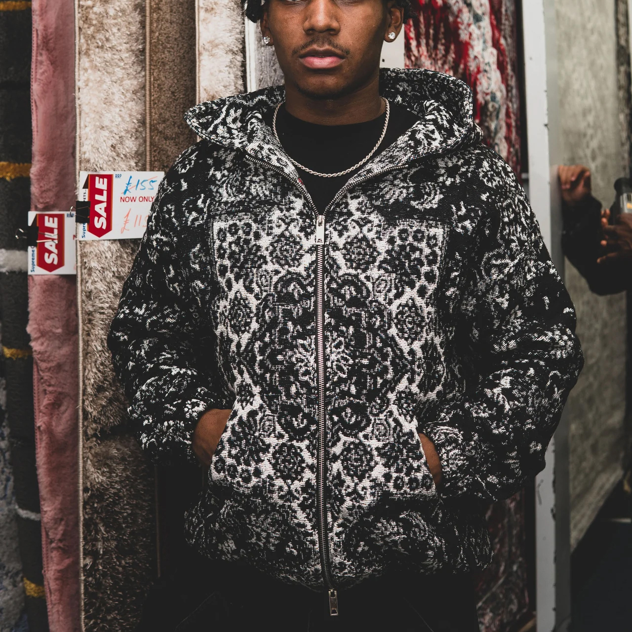 Palace style classic casual street zipper tapestry hoodie