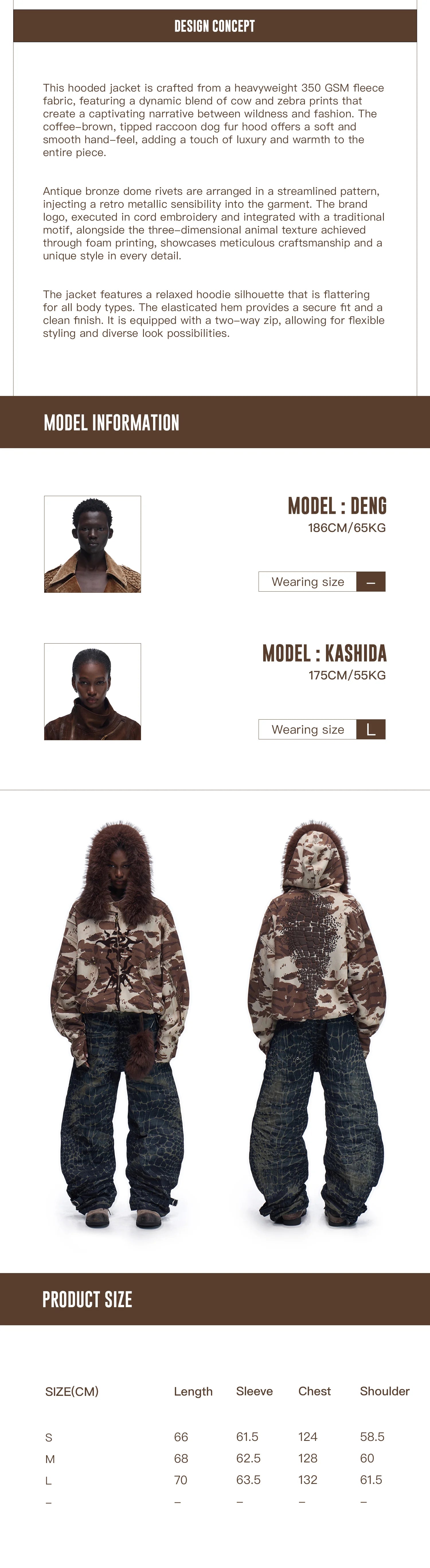 Personsoul Animal Print Hoodie with Fur-Lined Hood