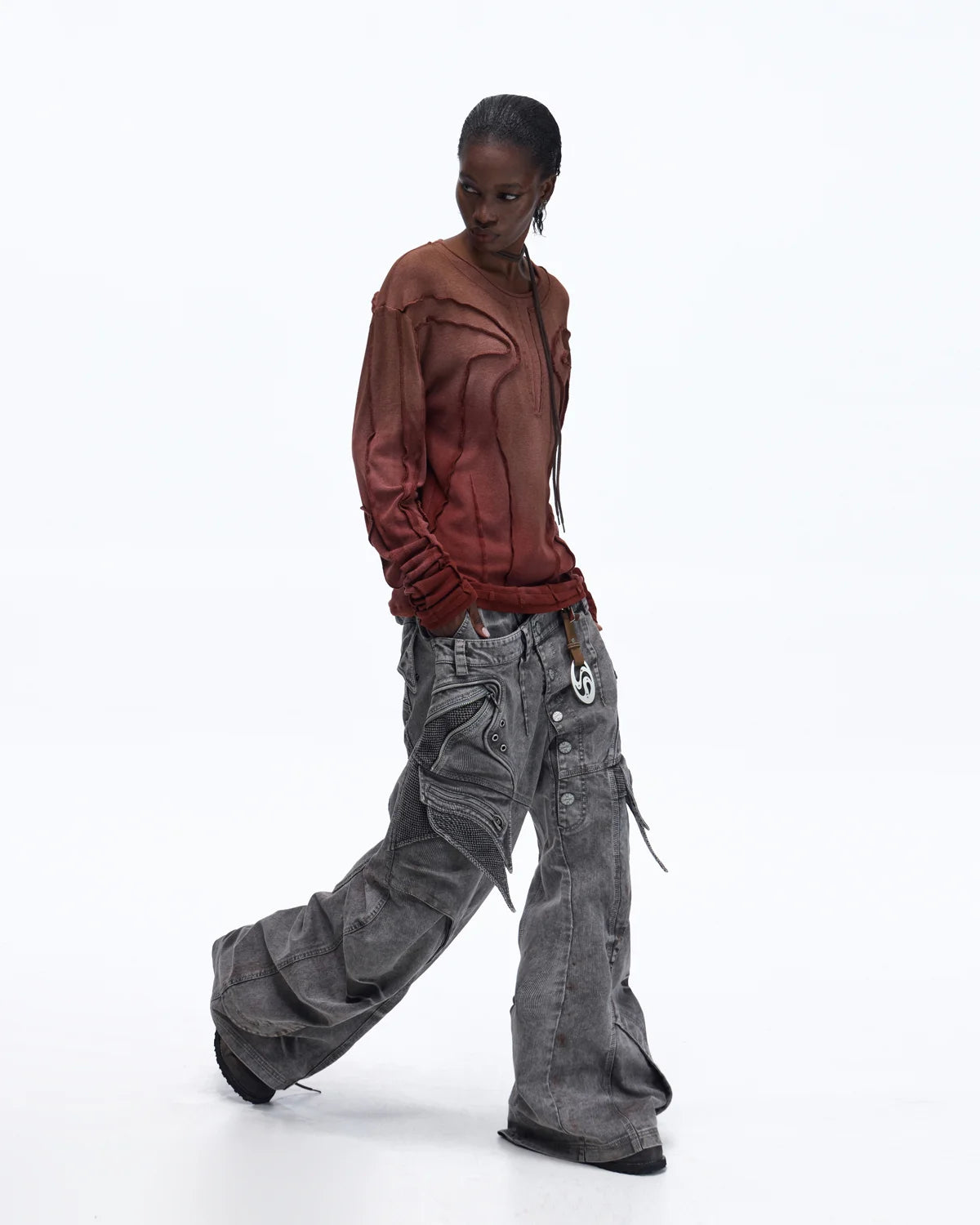 Personsoul Contrast Stitch Long Sleeve Top In Red