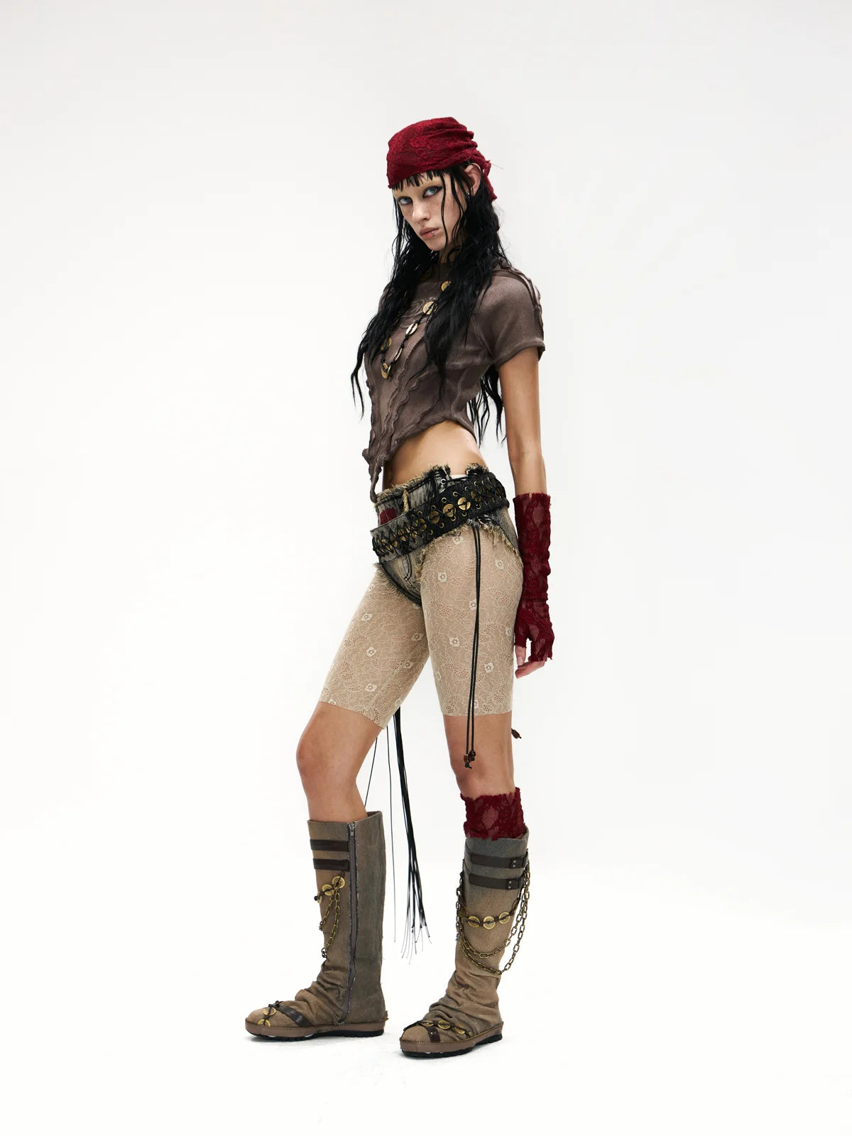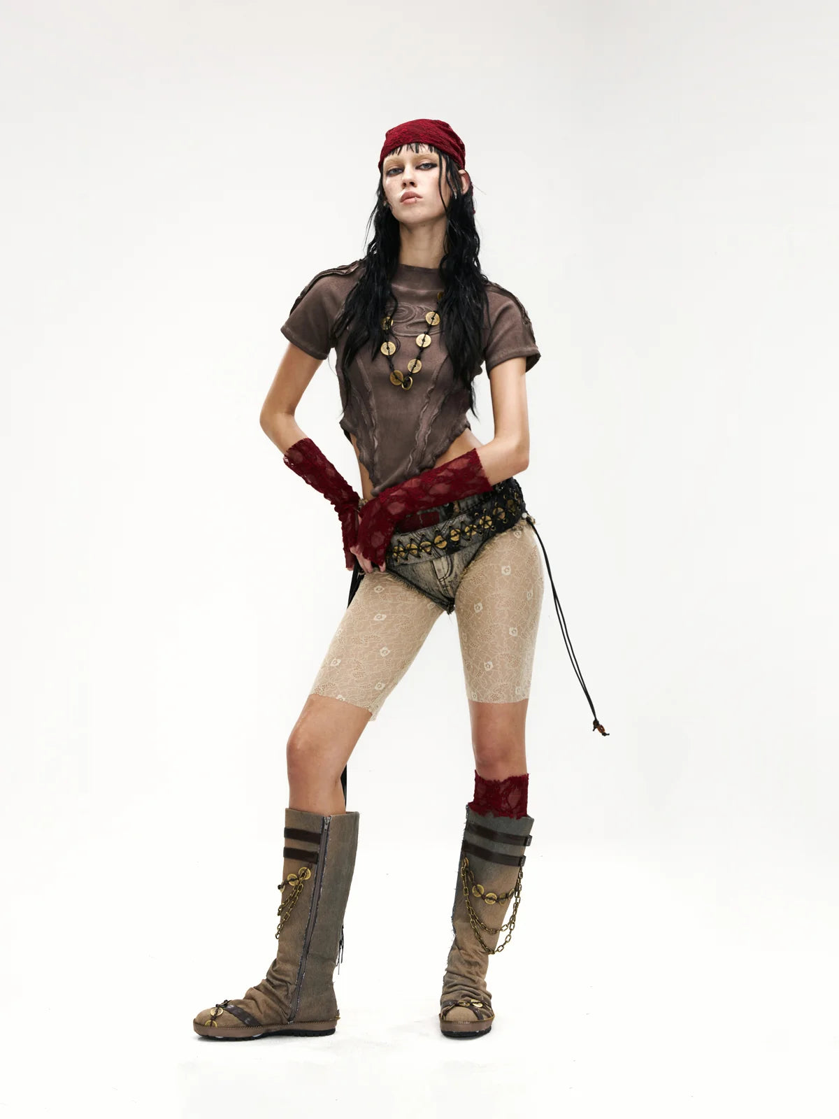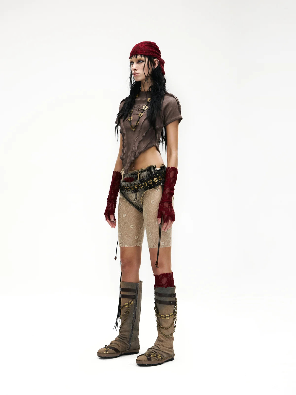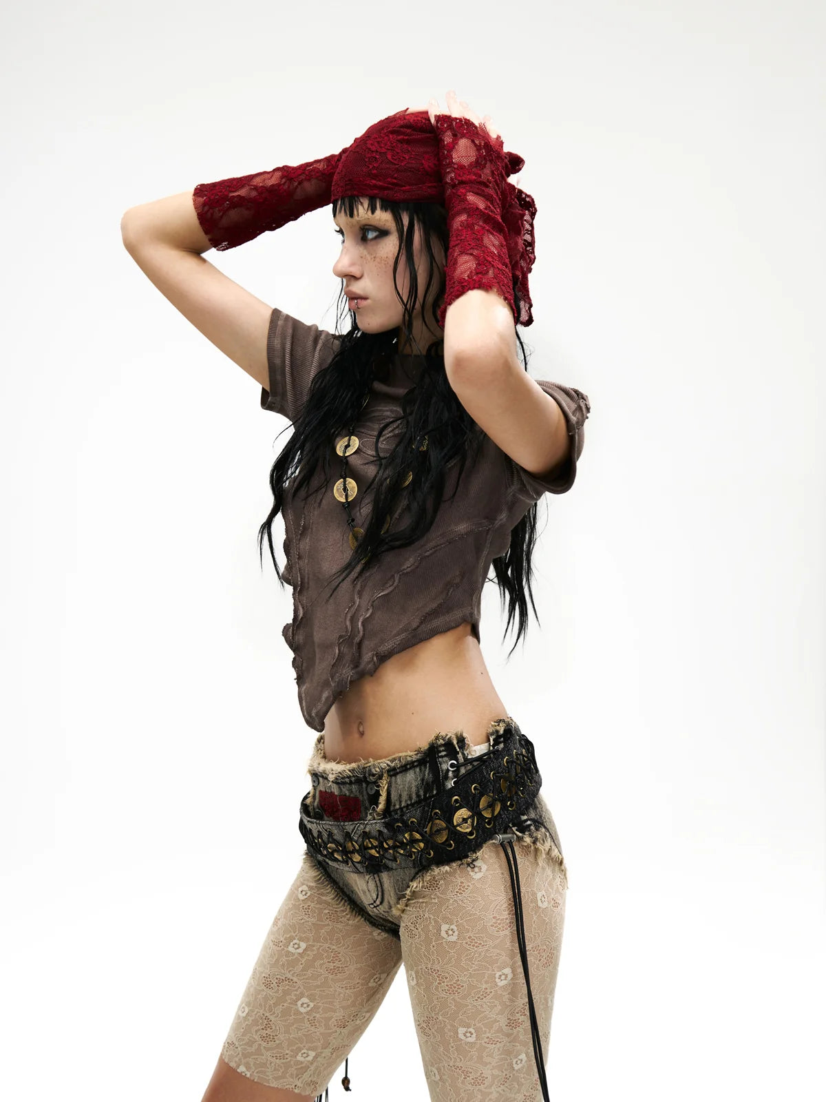 • Slim Fit.• 100% Cotton.• Applique Embroidery.• V-Shaped Hem.• Washed And Distressed.• Raw edge stitching.
