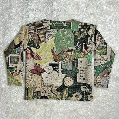 Retro Pattern Tapestry Crew Neck Sweatshirt