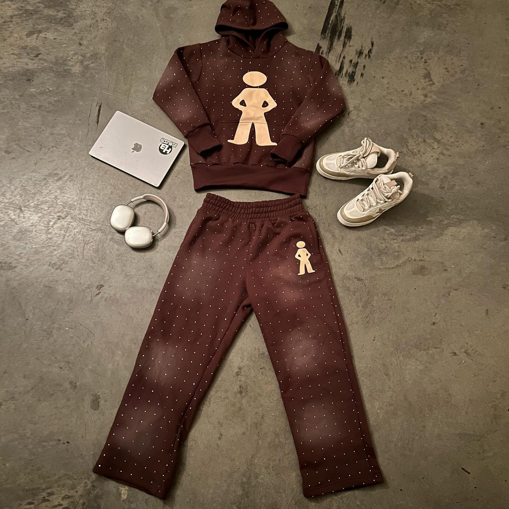 Retro Polka Dot Print Sweatshirt Set