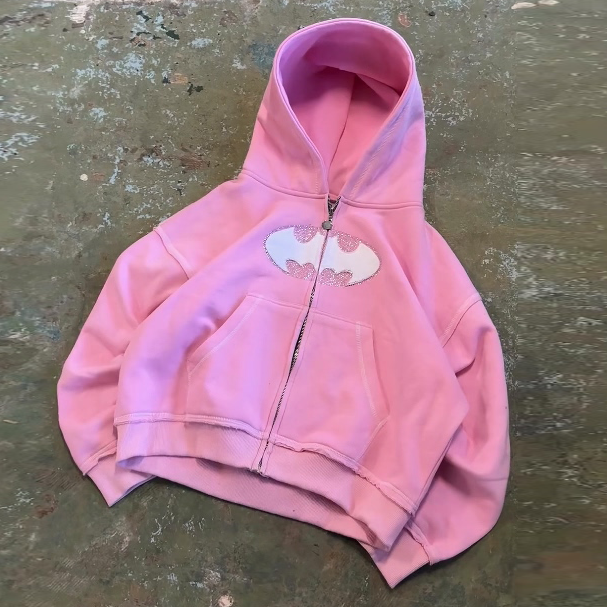 Rhinestone Bat Zip Hoodie