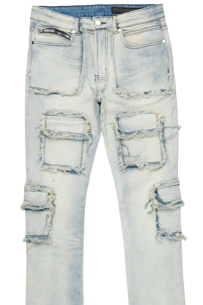Tyrell Blue Stacked Flare Cargo Jean
