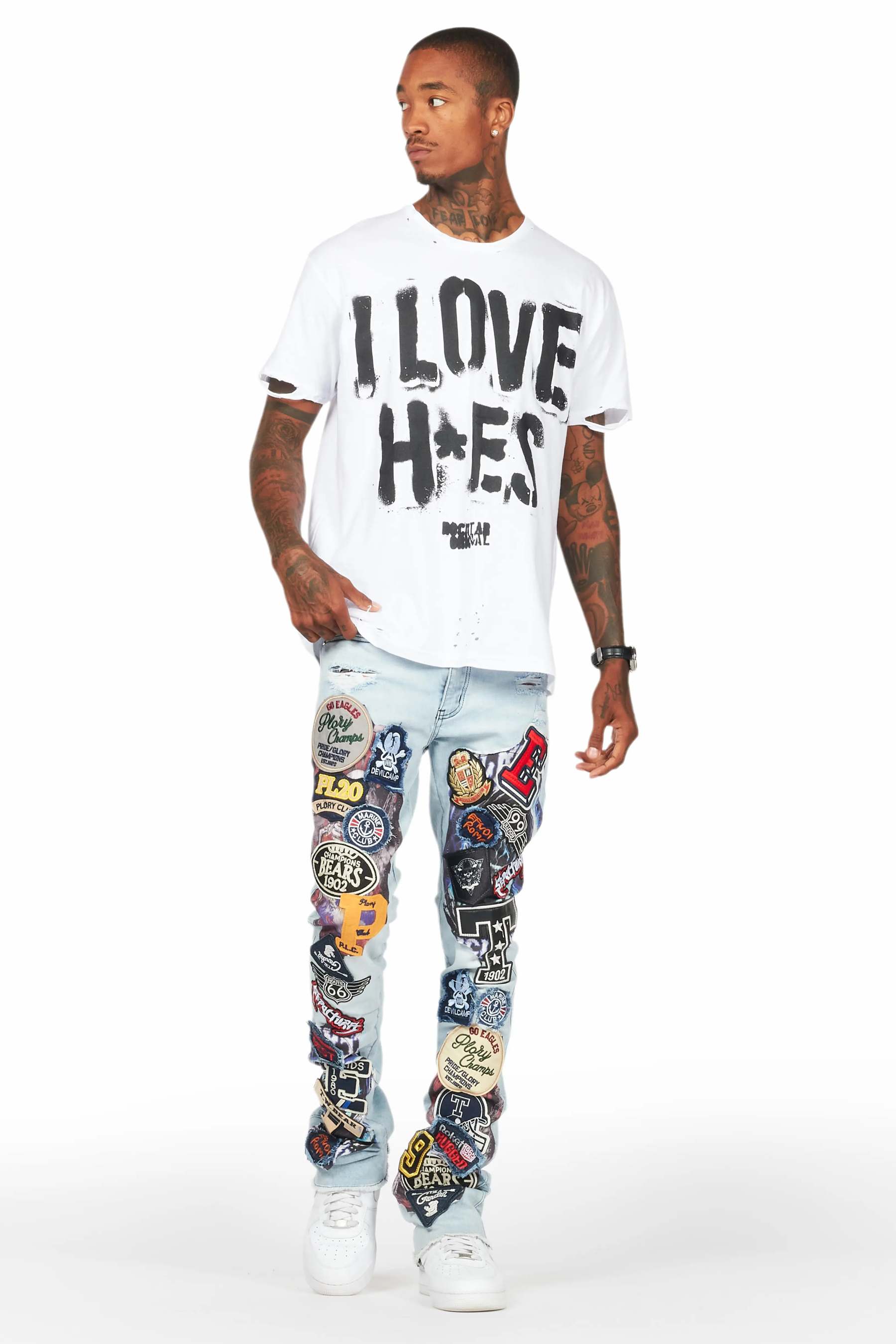 *NOTE: These jeans are purposefully designed with extra long legs so the fabric properly bunches at the hem, creating the stacked flare style.