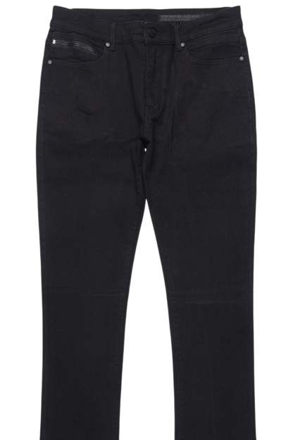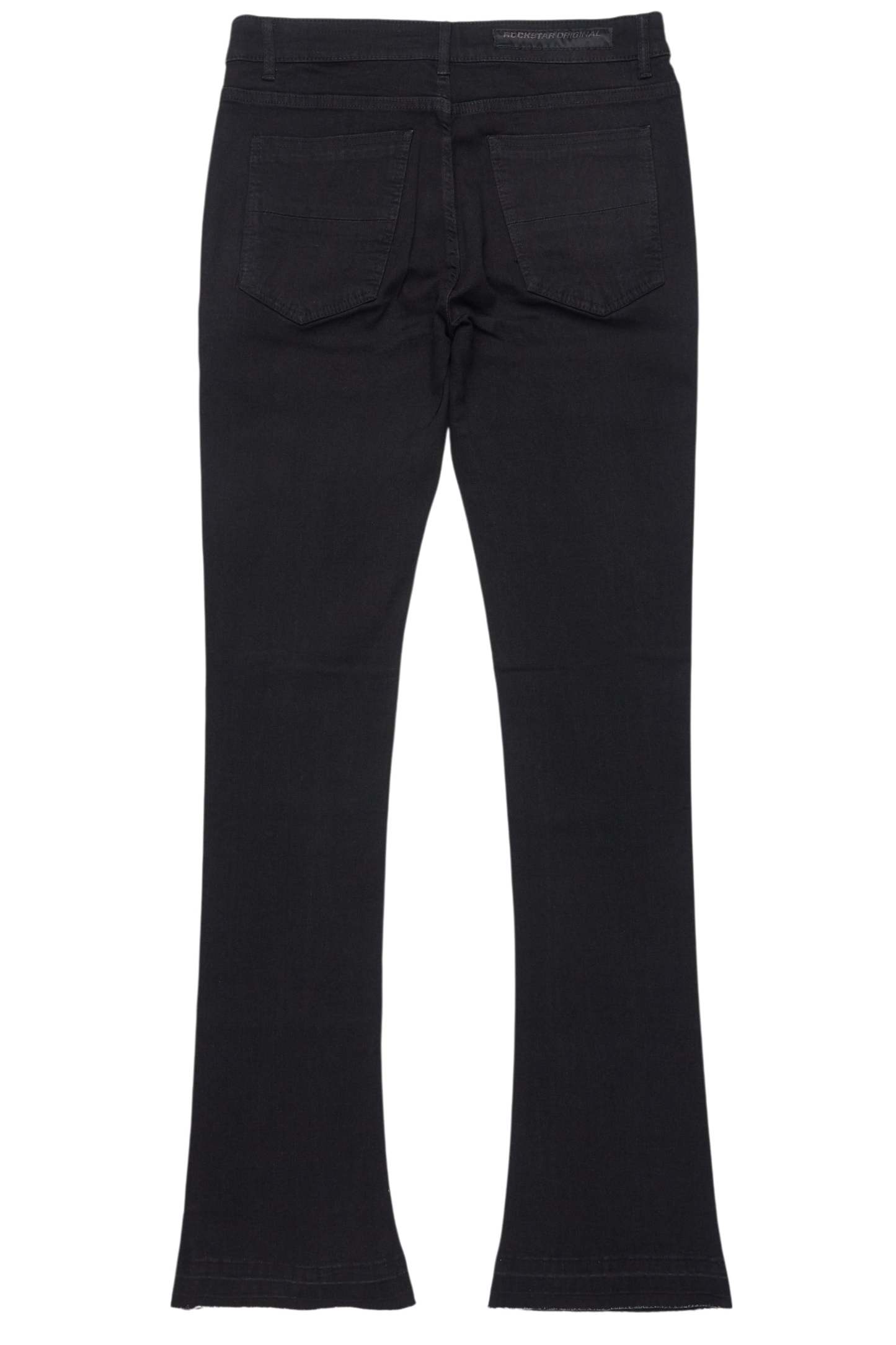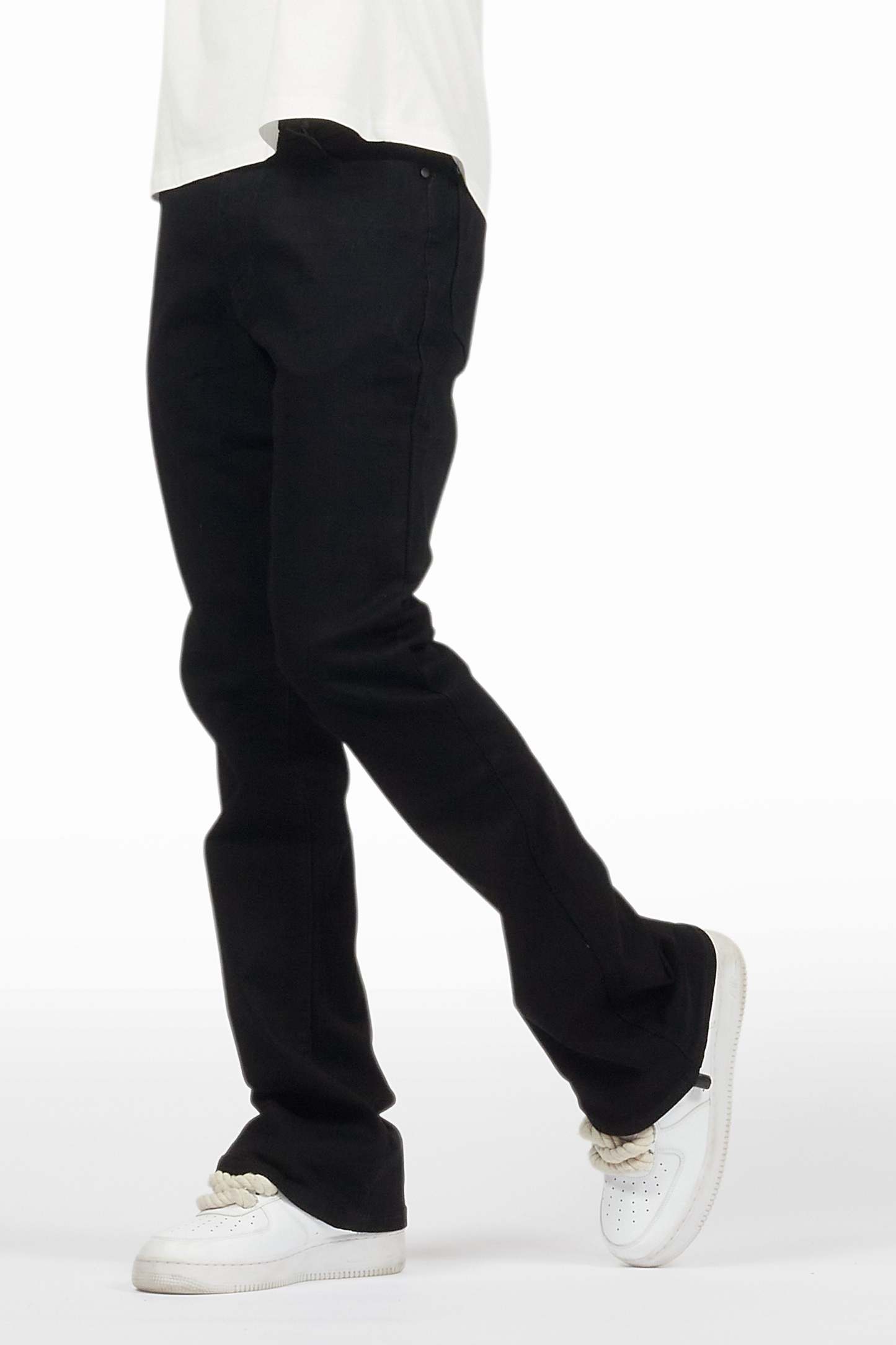 An urban standard-length denim jean for men in jet black. Designed with organic cotton and flare legs for a dope streetwear style.