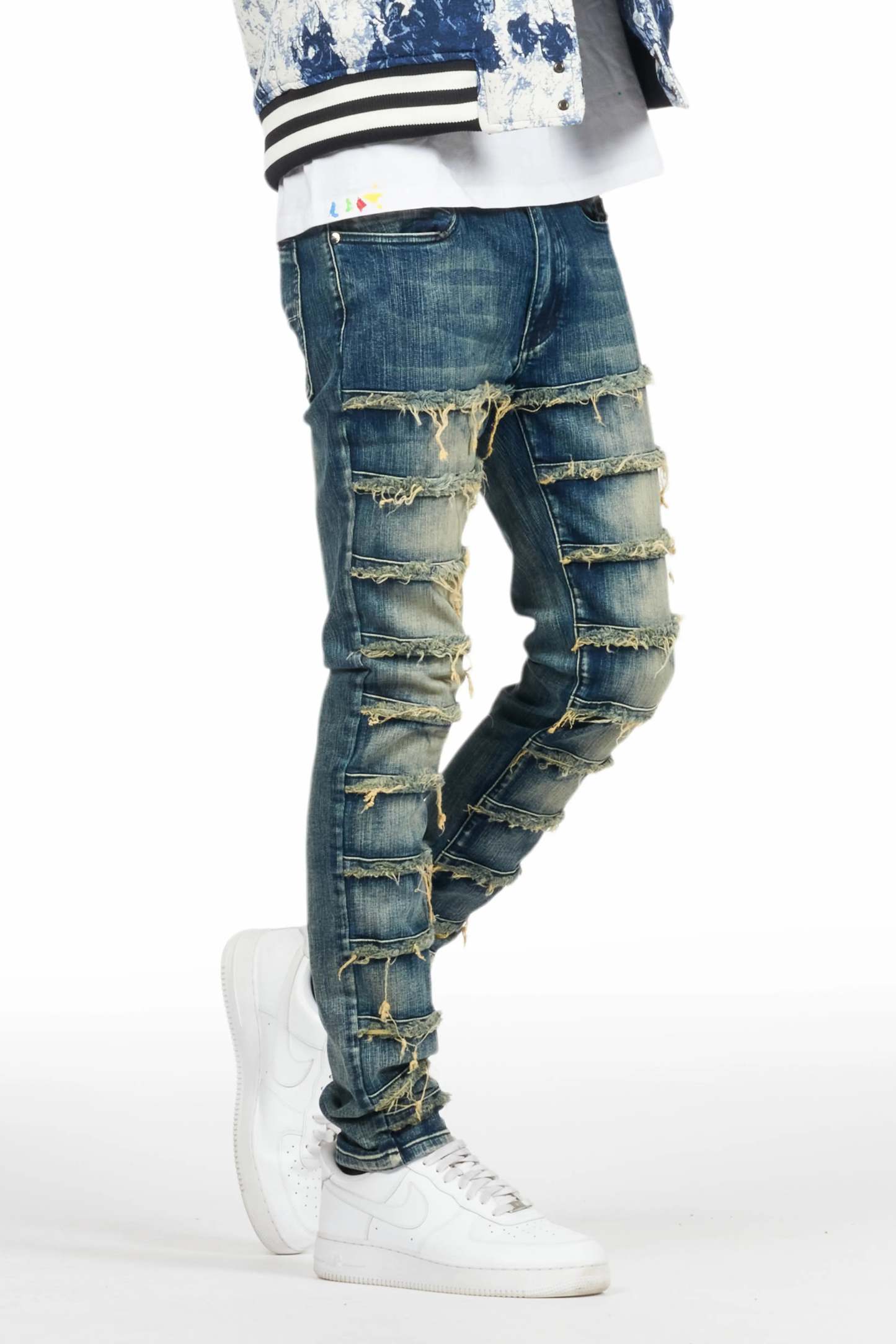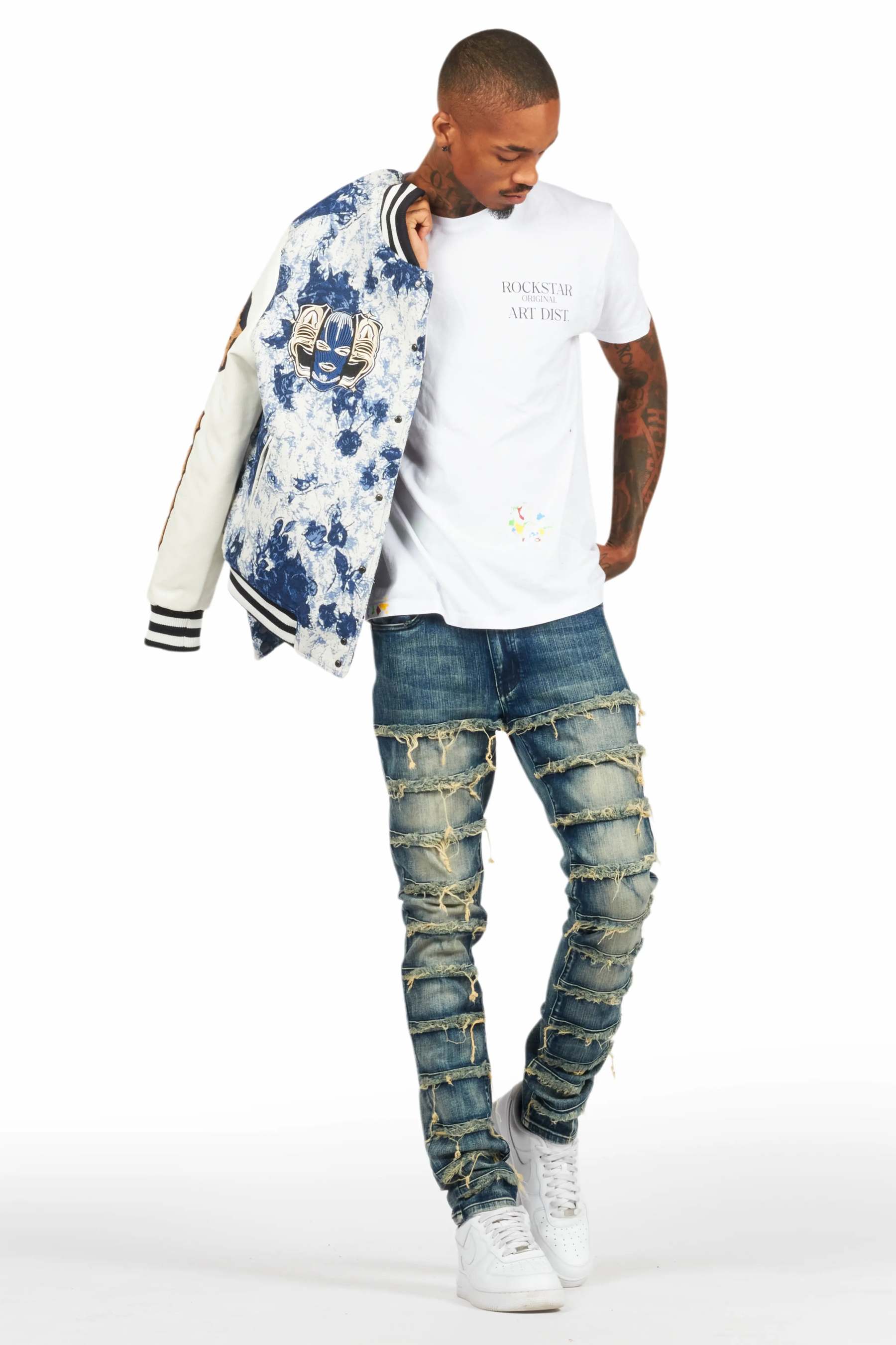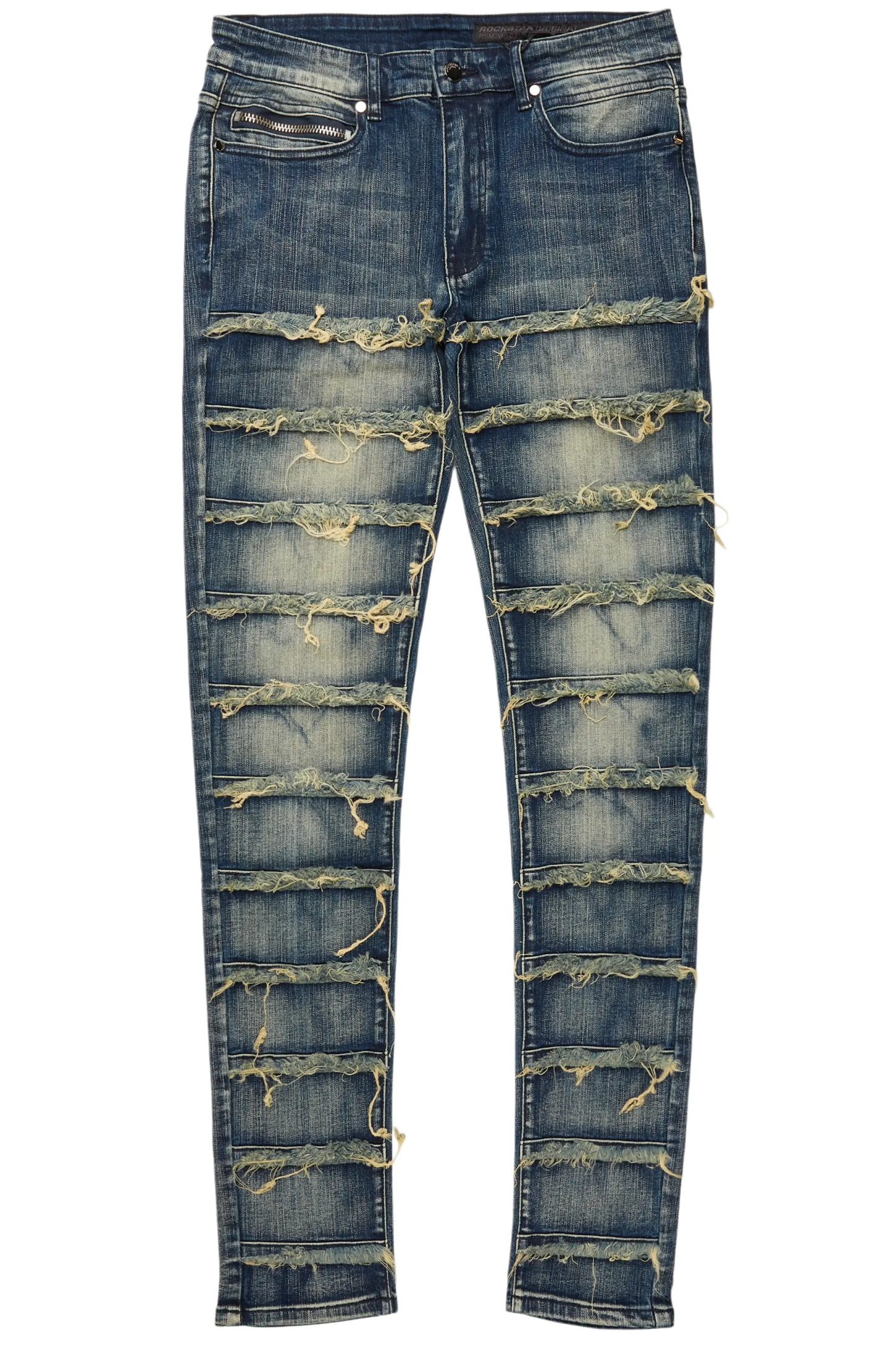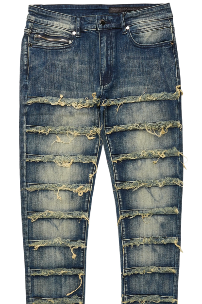 An urban denim slim jean for men in tint. Designed with organic cotton and distressed detailing for a dope streetwear style.