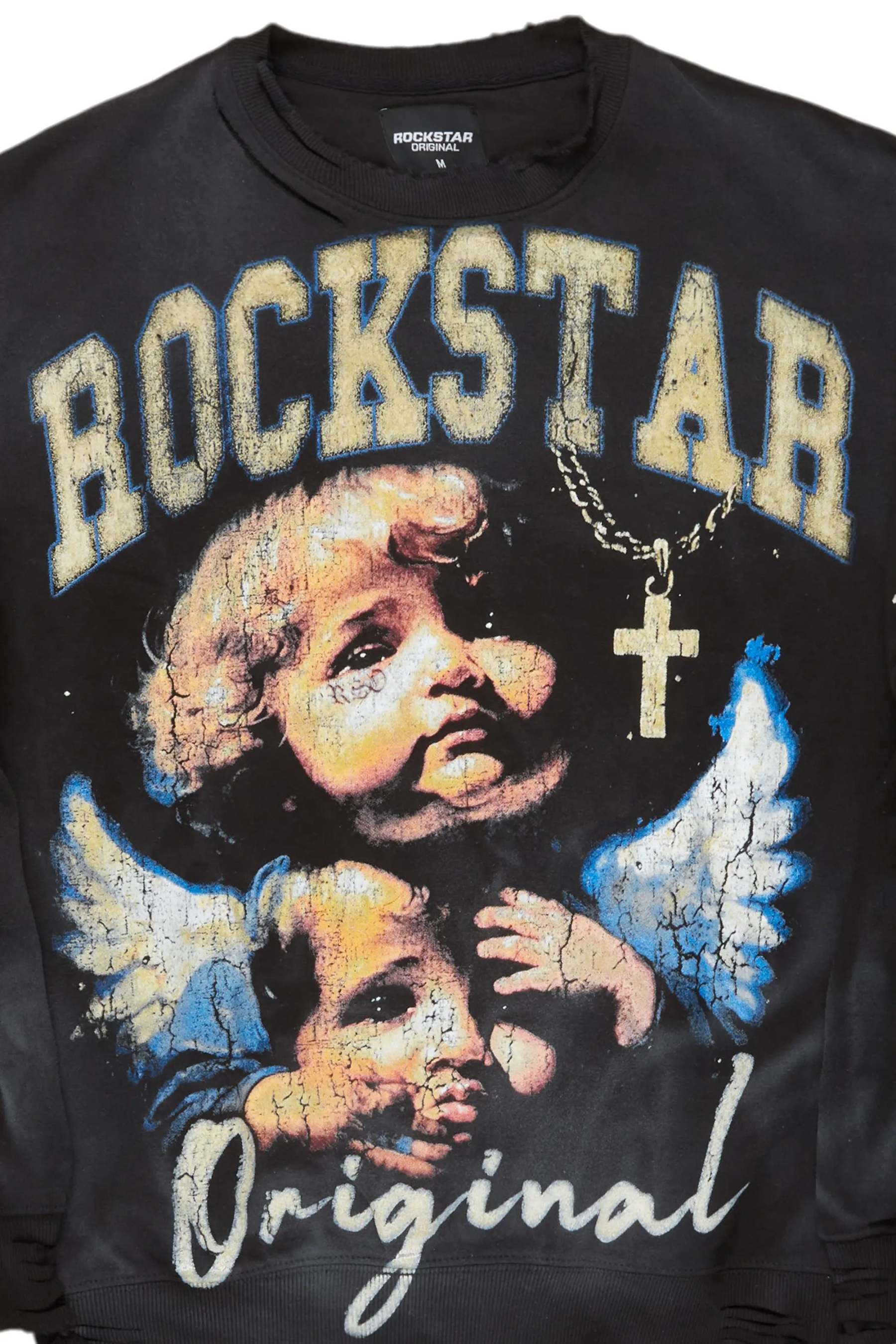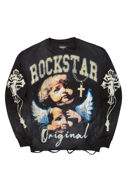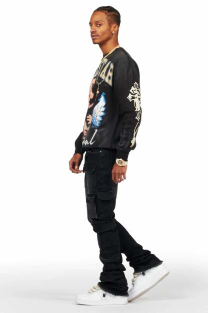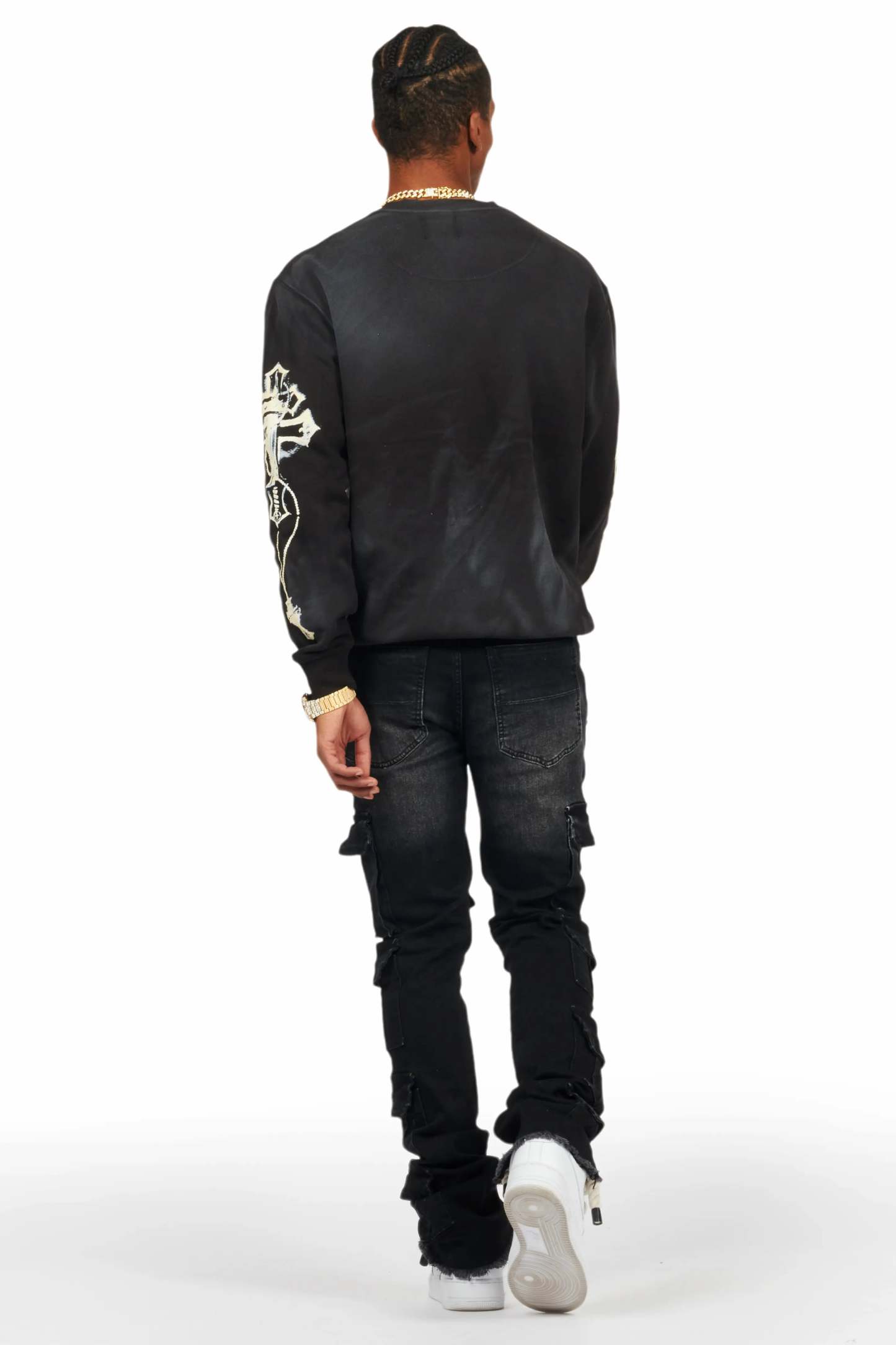 An urban streetwear crewneck sweatshirt for men in black. Designed with organic cotton and custom detailing for a dope everyday style.