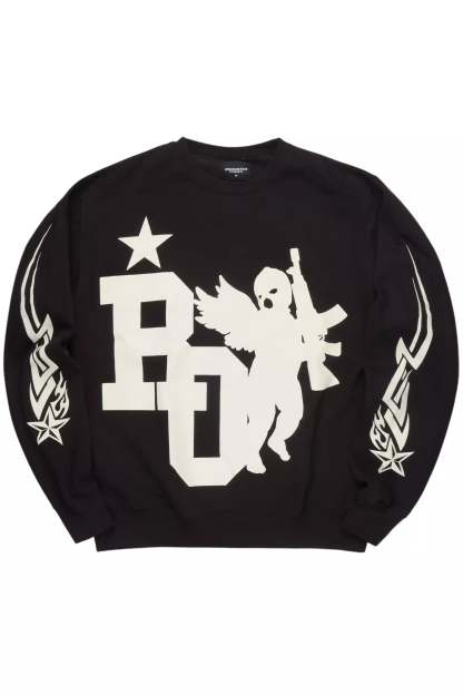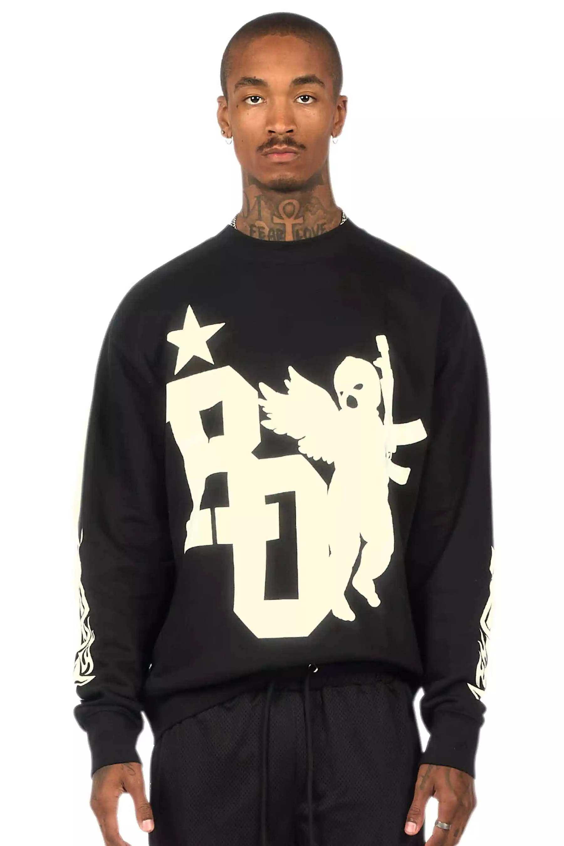 Pluton Black/Cream Graphic Crewneck Sweatshirt