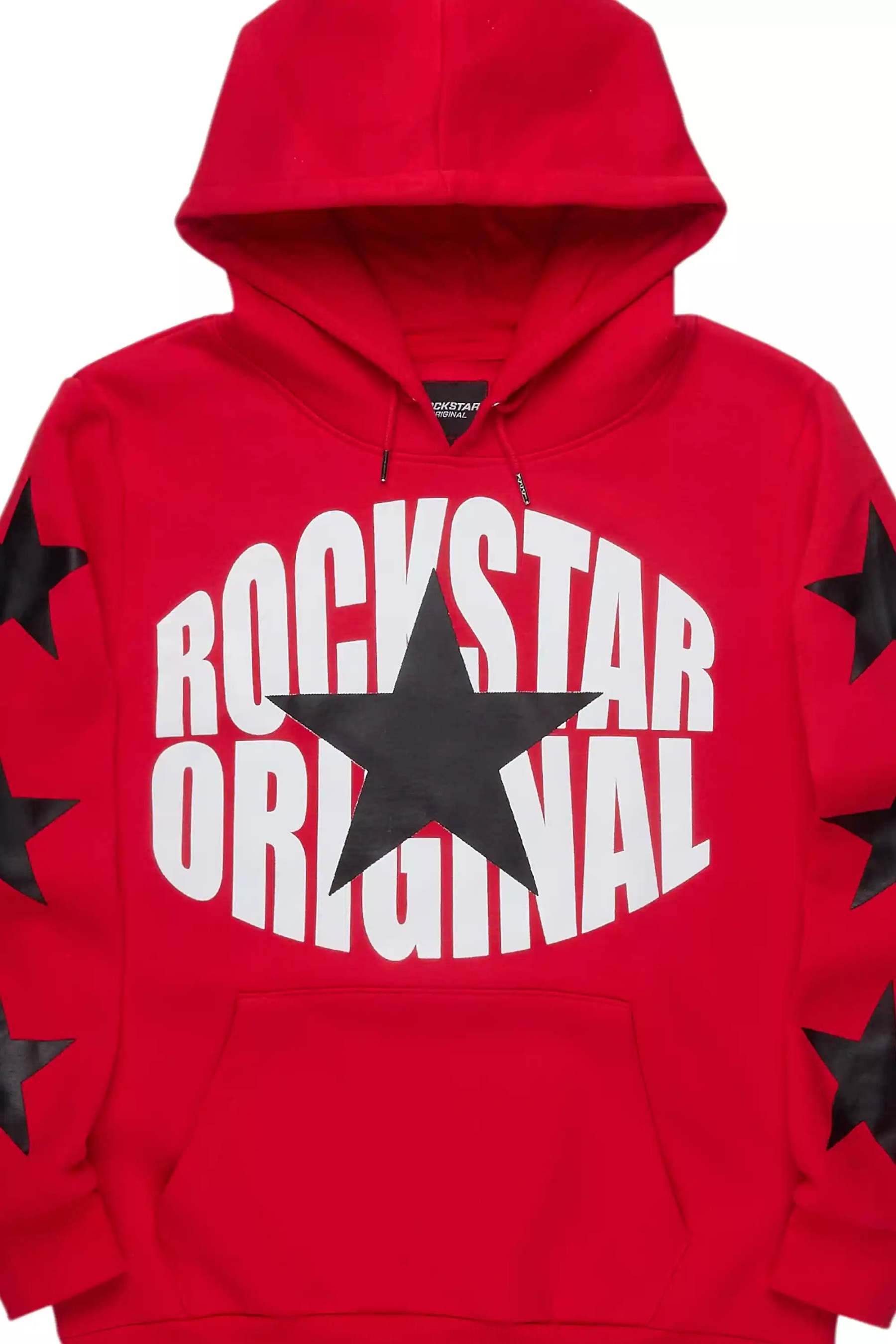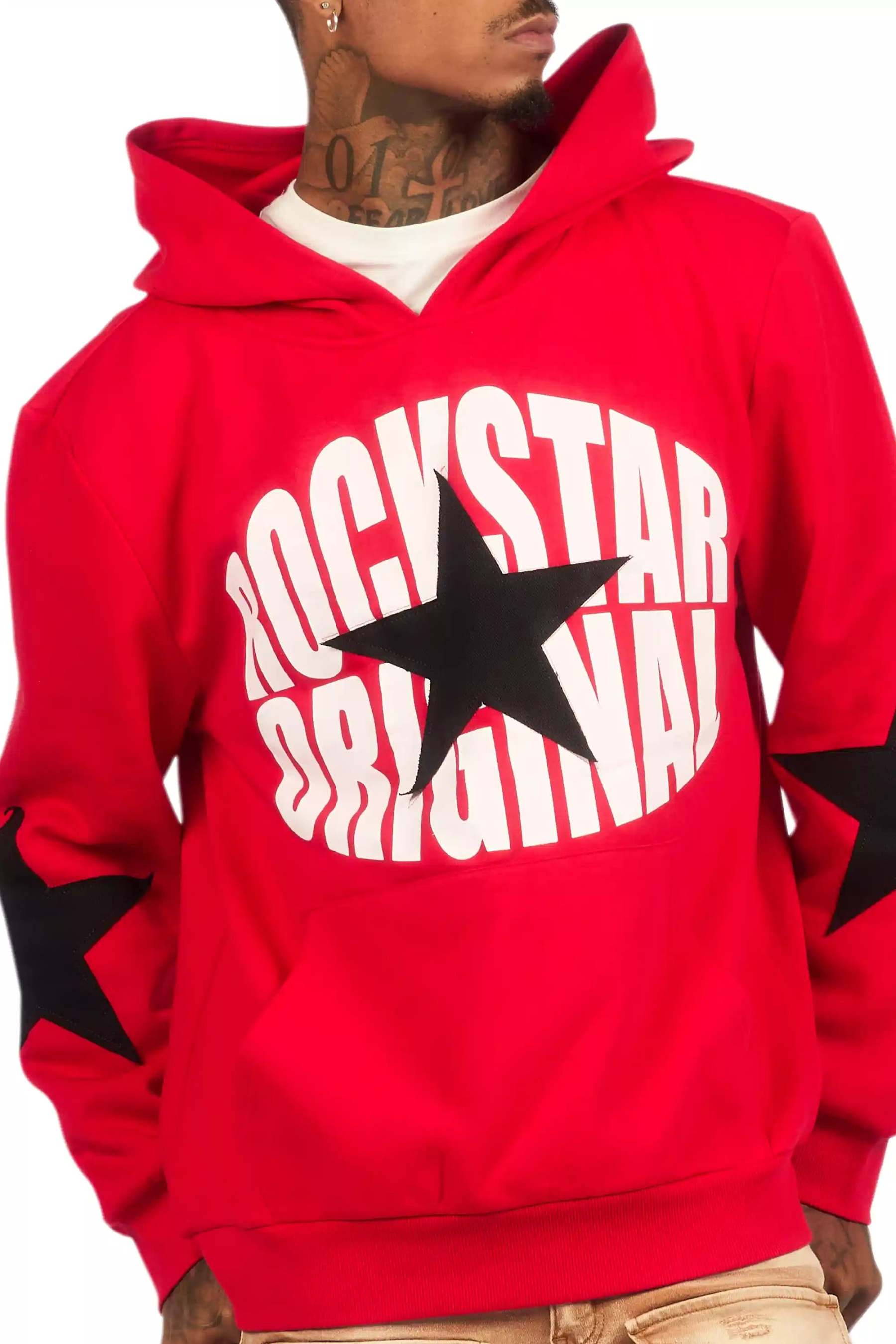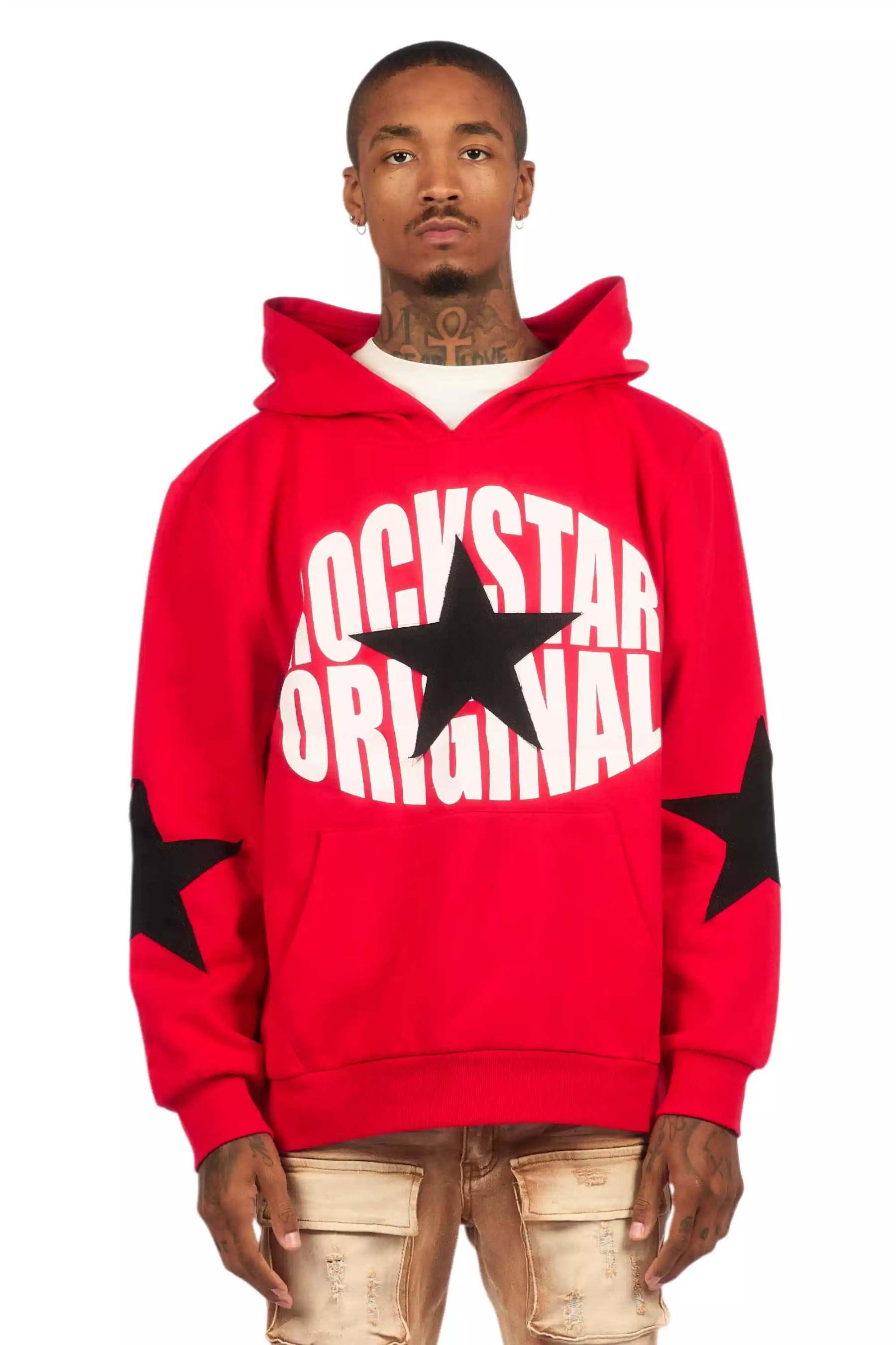 An urban hoodie for men in red. Designed with ultra soft organic cotton and custom detailing for a must-cop streetwear style.