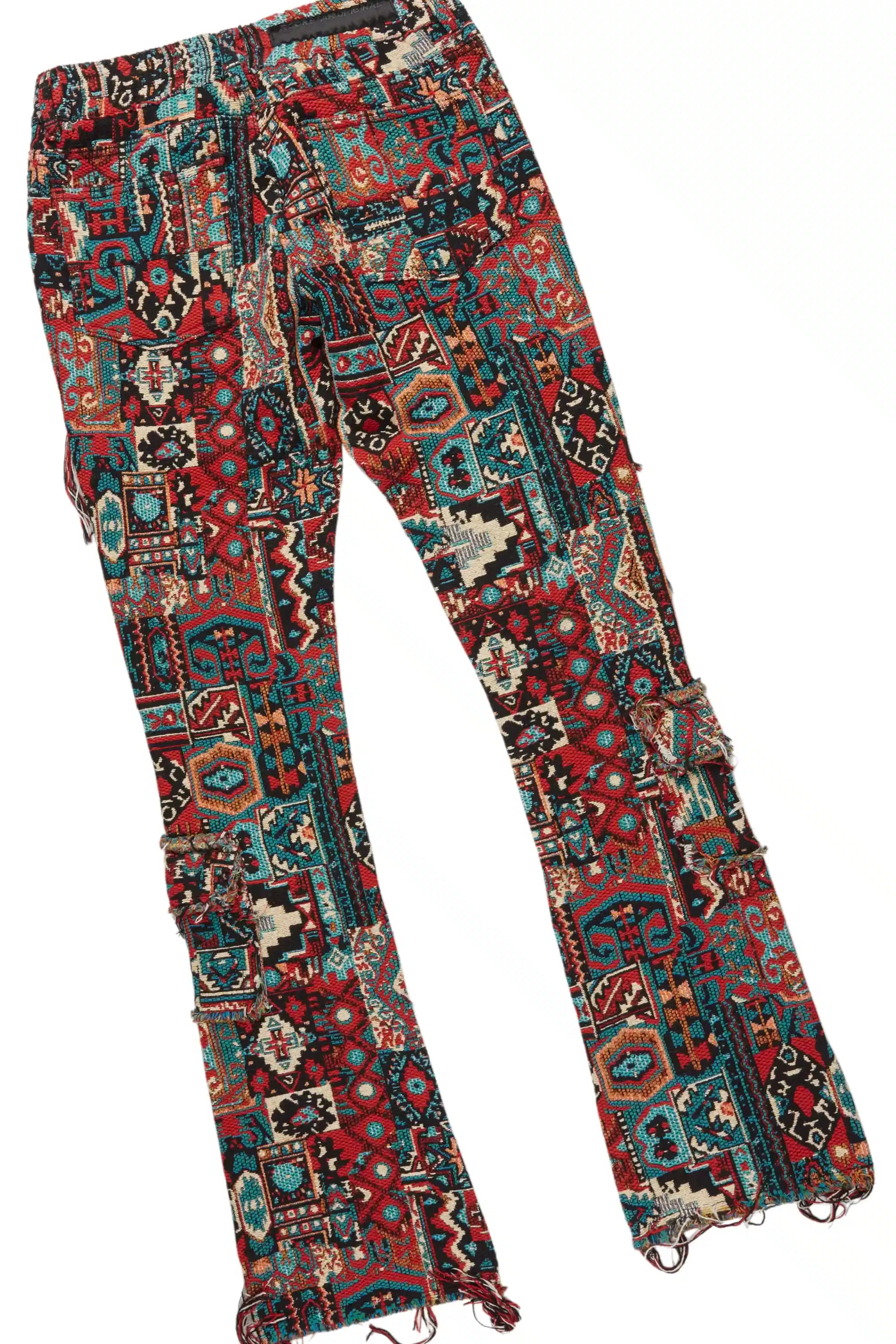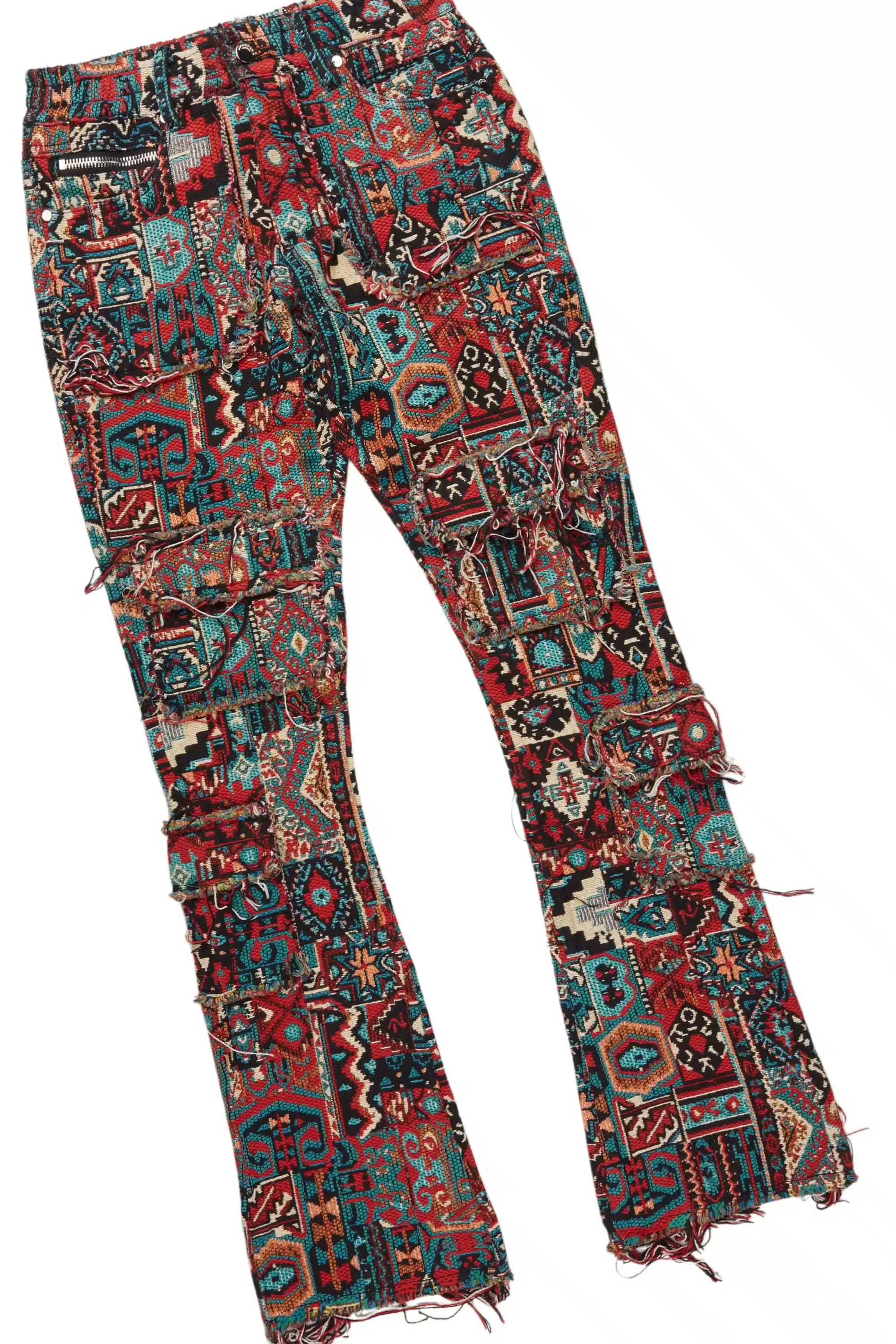 An urban two-piece hoodie and stacked cargo tapestry jean set for men. Designed with organic cotton and extra long legs for a dope streetwear outfit set.