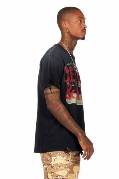An urban streetwear t-shirt for men in black. Designed with organic cotton and custom detailing for a must-cop staple tee.