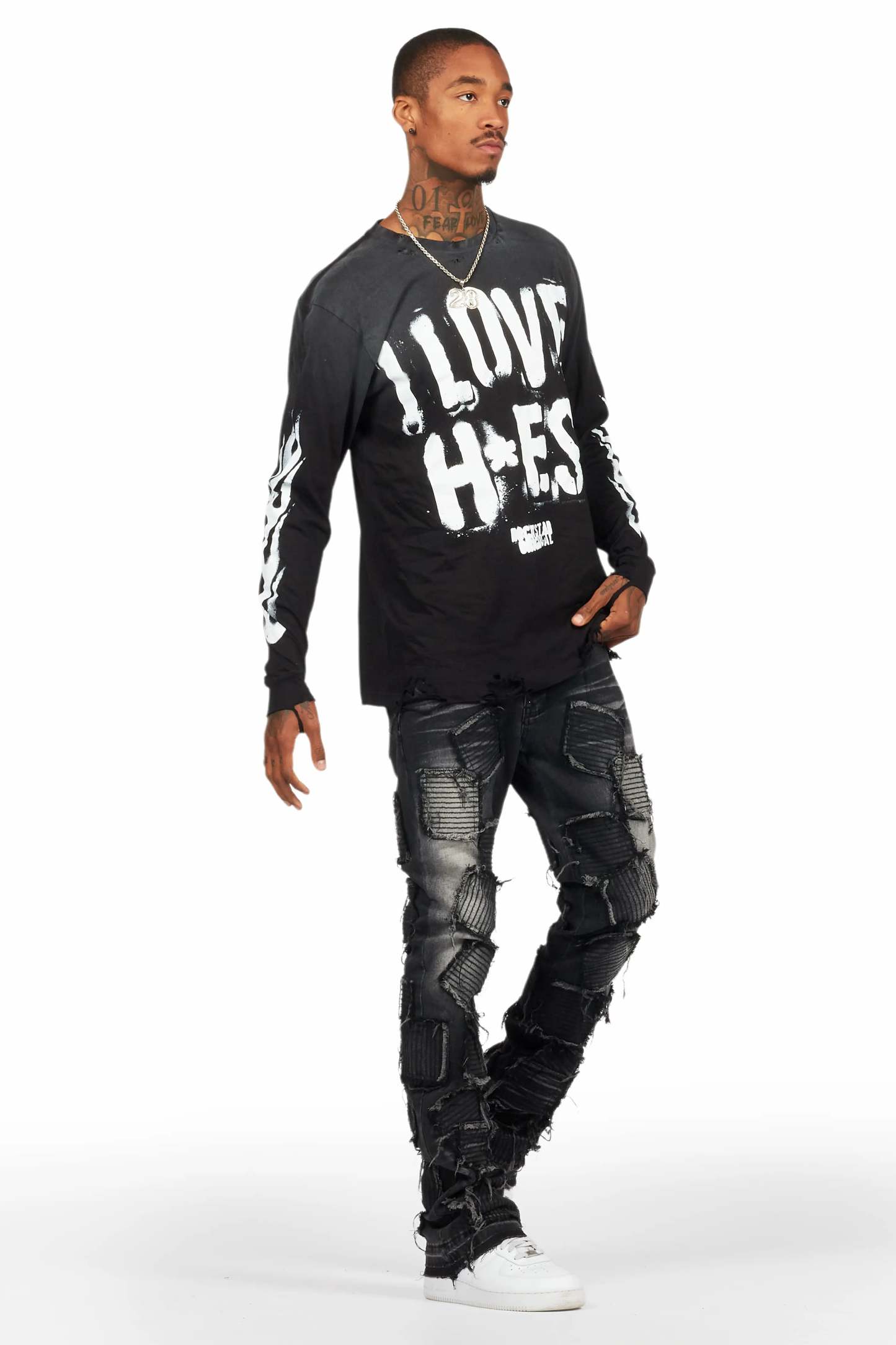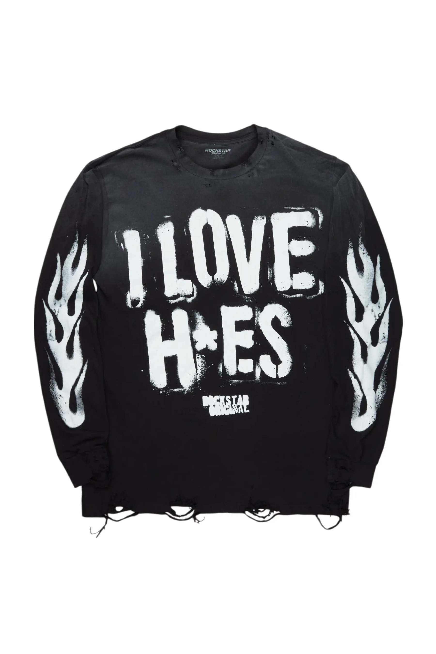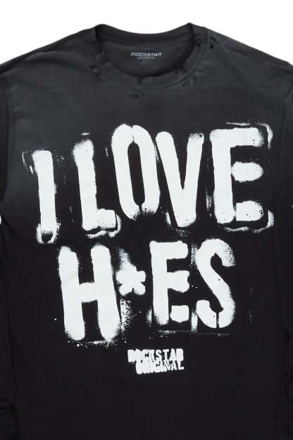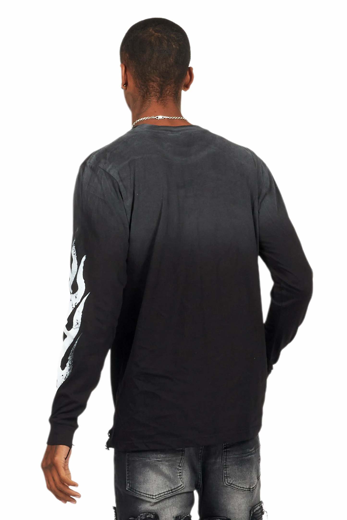 An urban streetwear long sleeve tee for men in black. Designed with a worn-in wash and custom detailing for a must-cop staple piece tee.