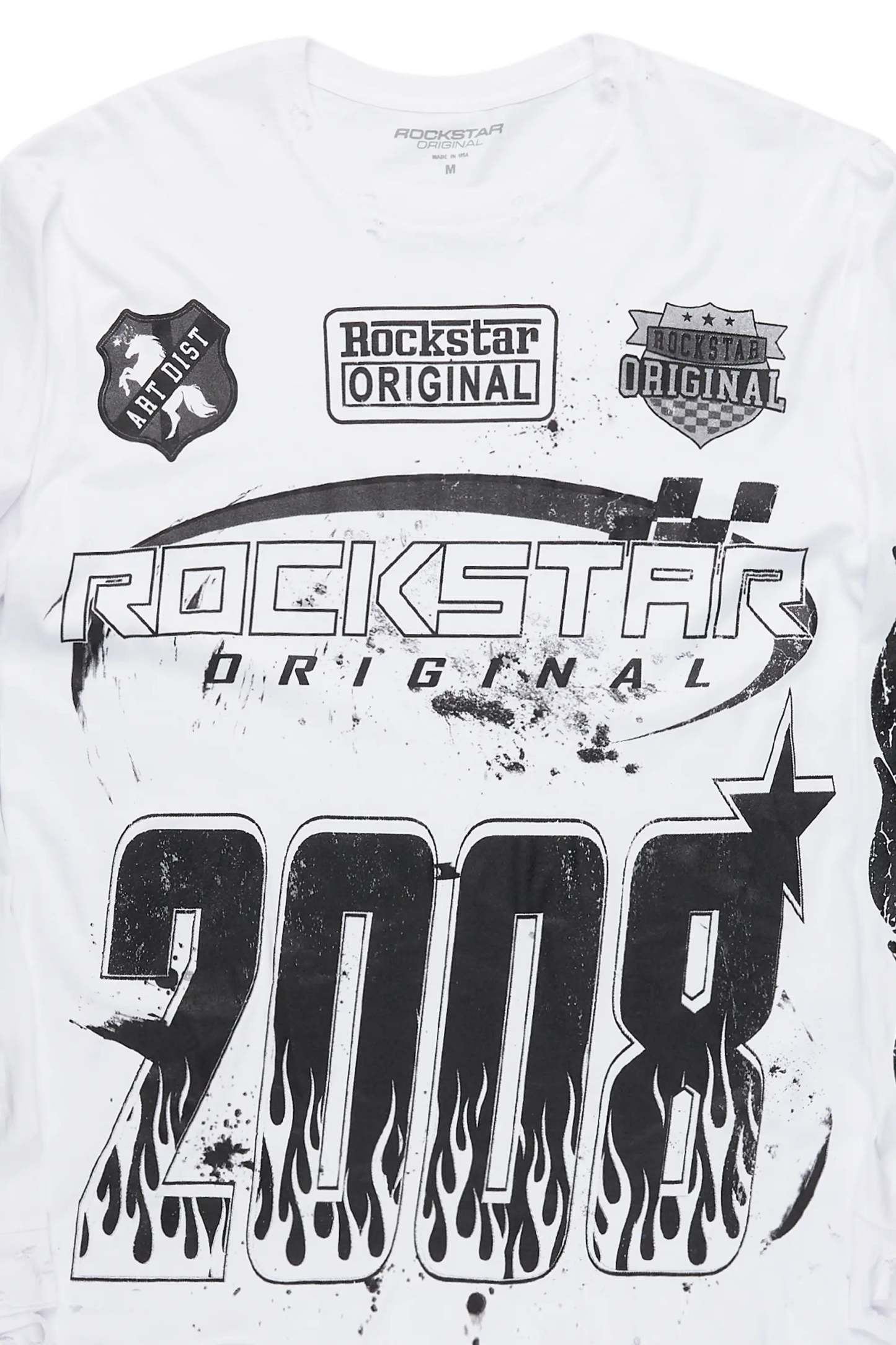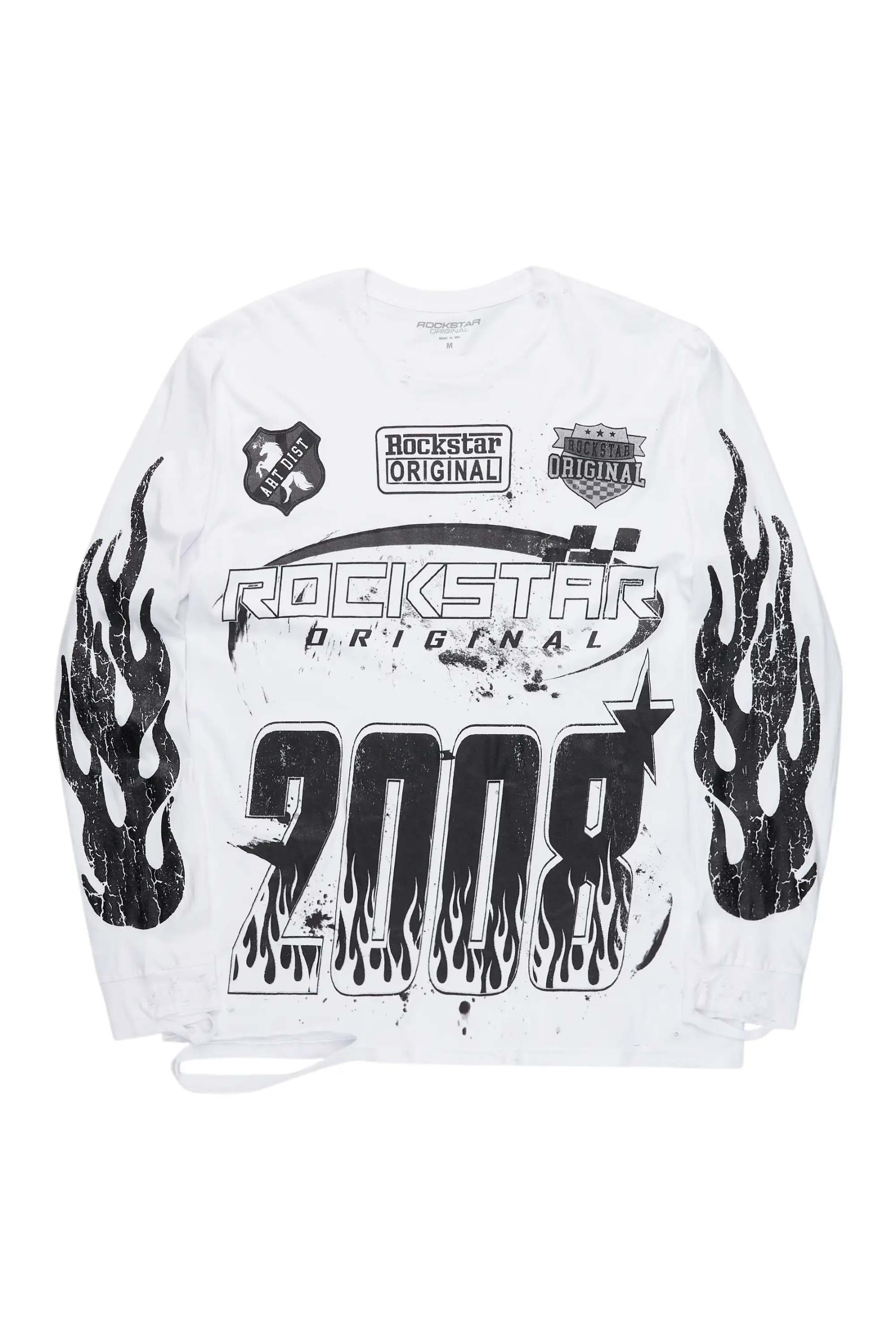 An urban streetwear long sleeve tee for men in white. Designed with a worn-in wash and custom detailing for a must-cop staple piece tee.