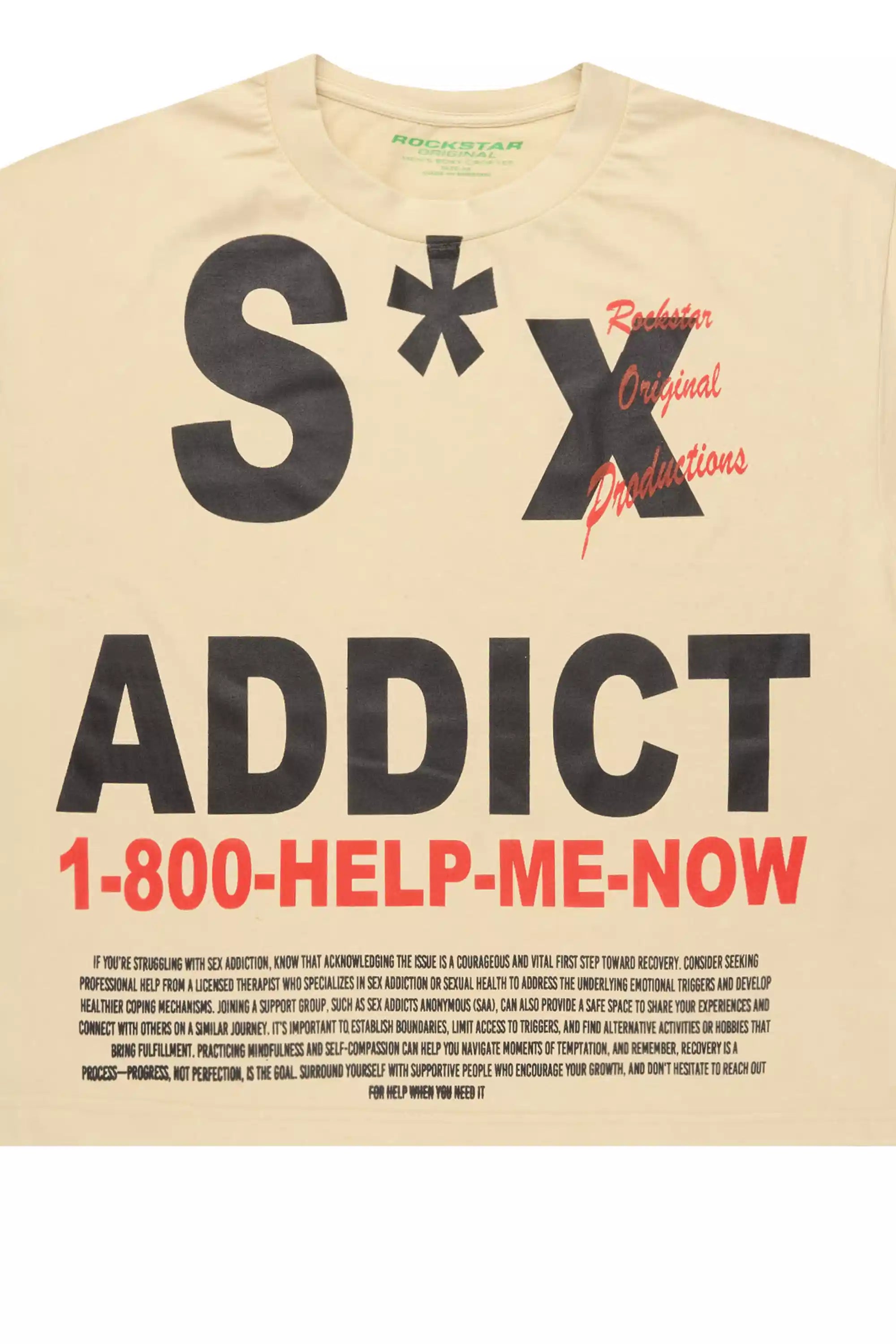 Addict Beige/Black Boxy Crop T-Shirt