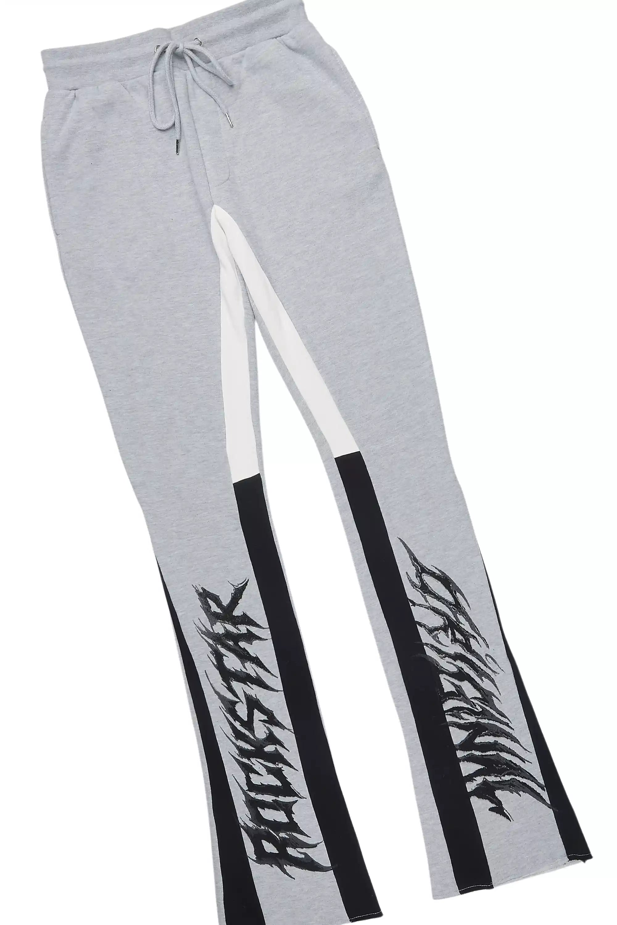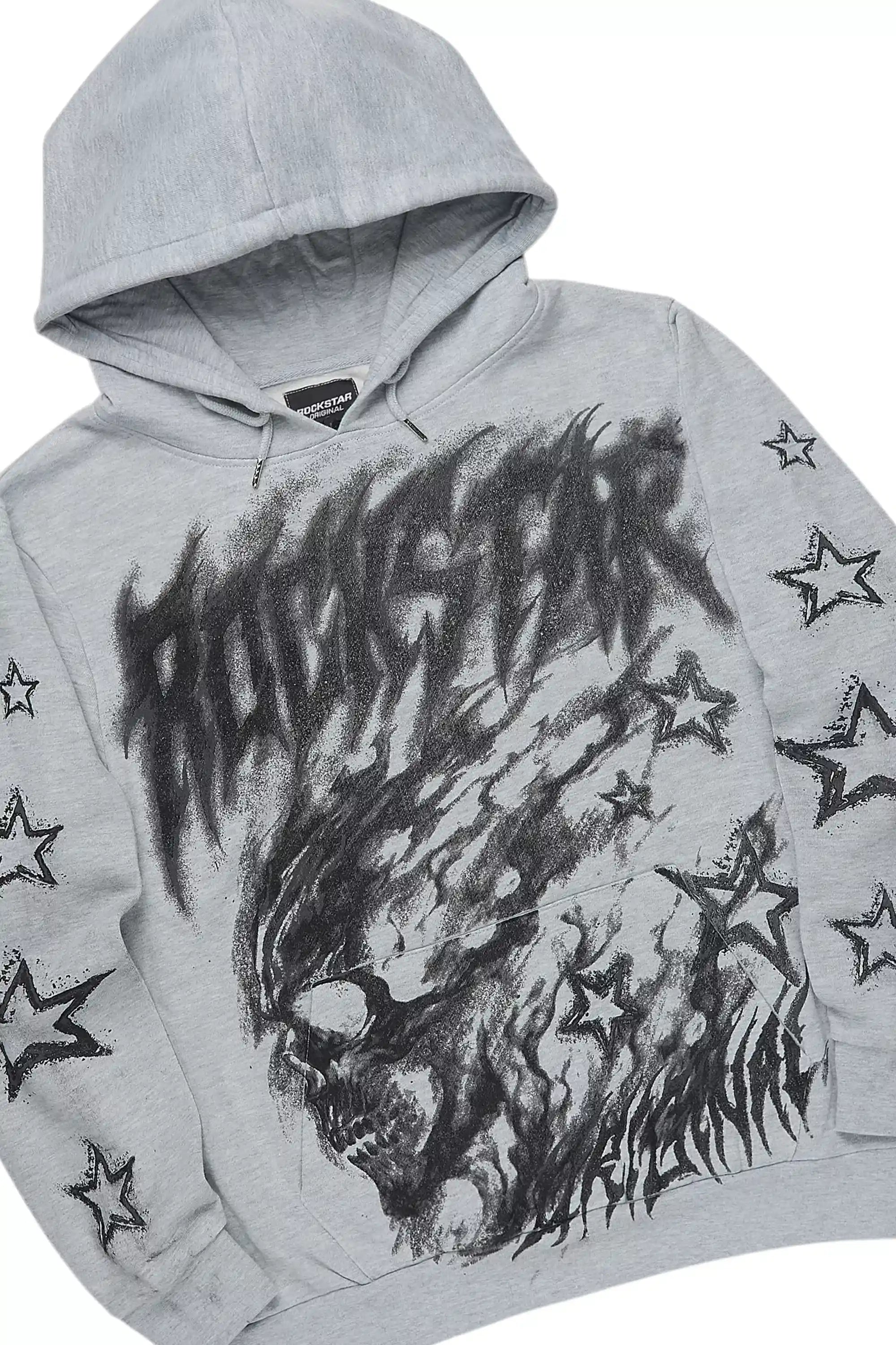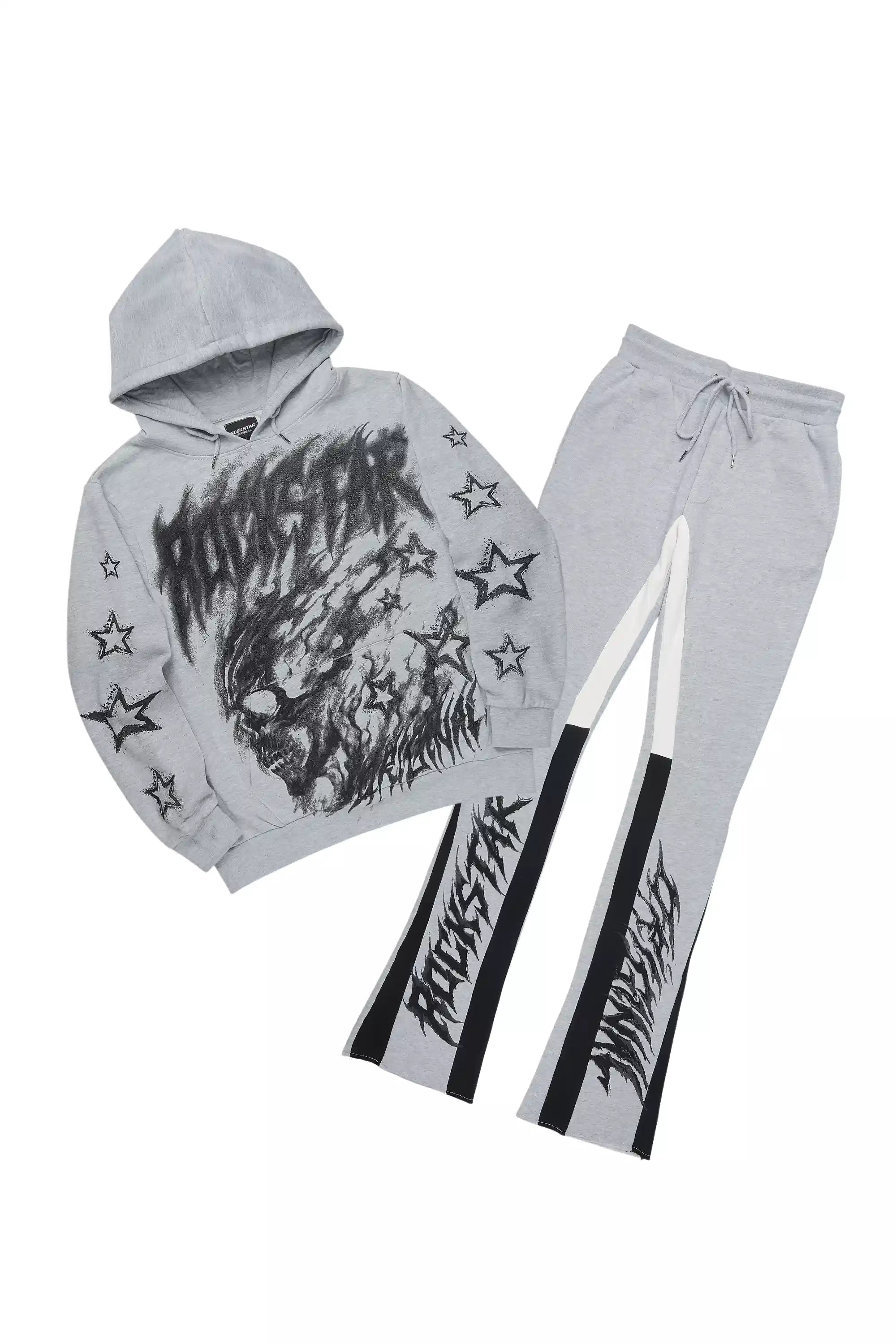 An urban two-piece hoodie and baggy track pant set for men in heather grey. Designed with extra long legs and custom detailing for a must-cop streetwear essential.