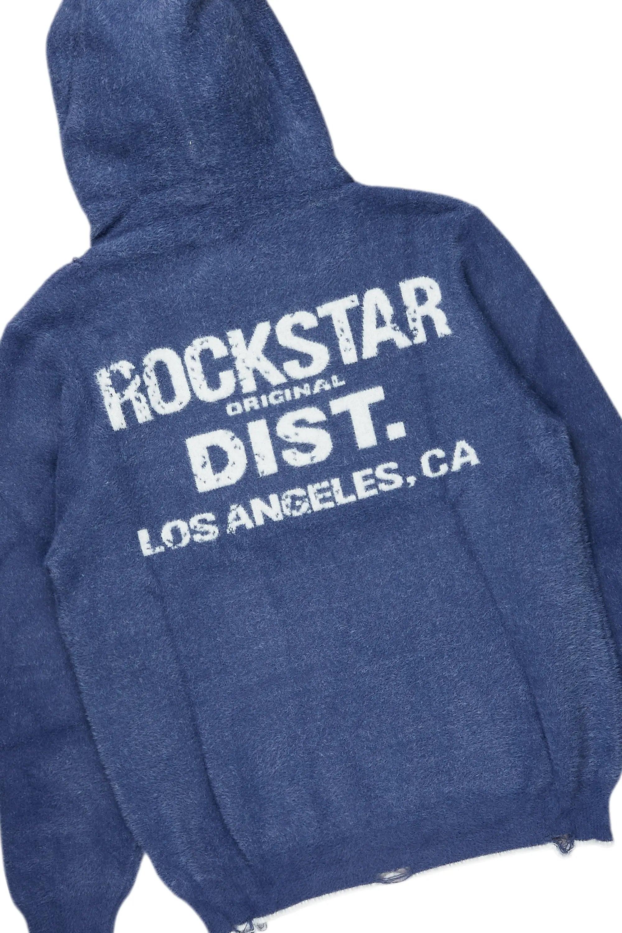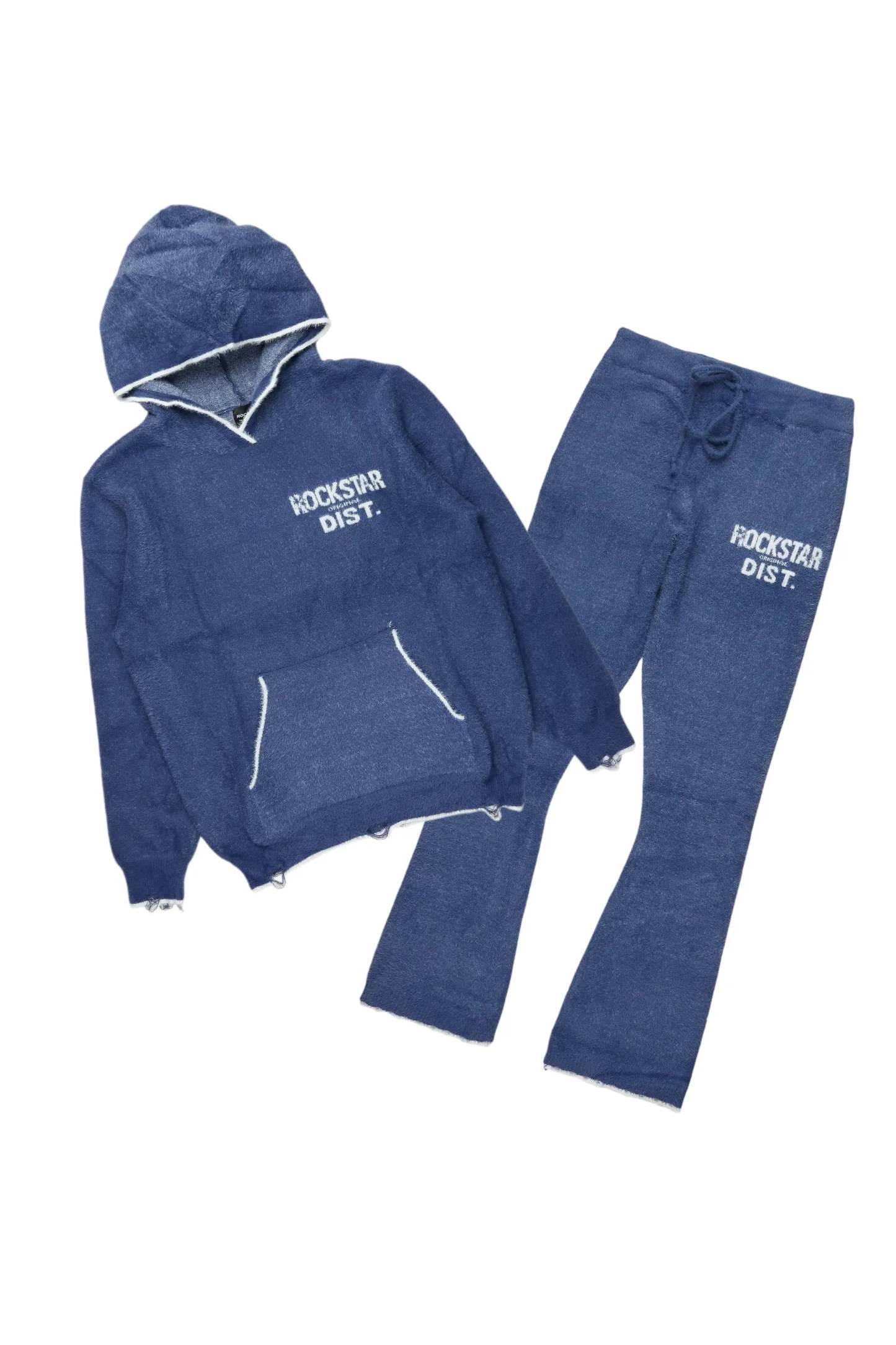 An urban two-piece hoodie and track pant set for men in navy. Designed with ultra soft knitted fabric for a must-cop streetwear set.