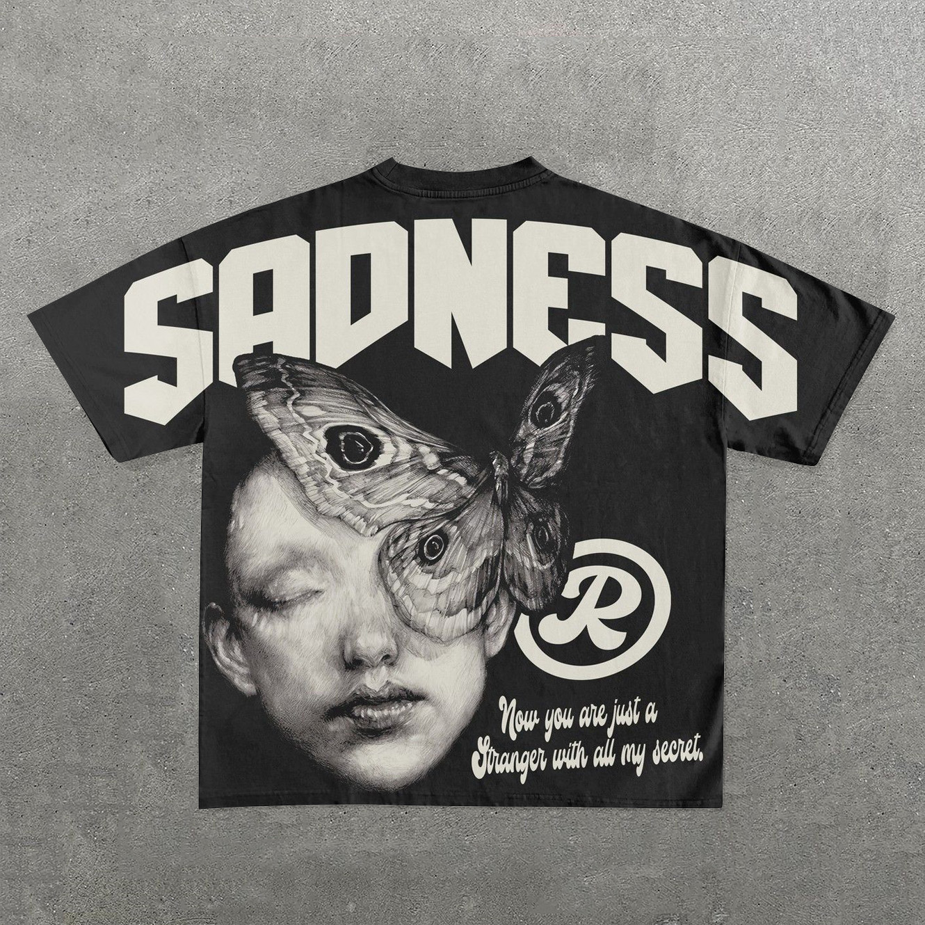 Sadness Butterfly Print Short Sleeve T-Shirt