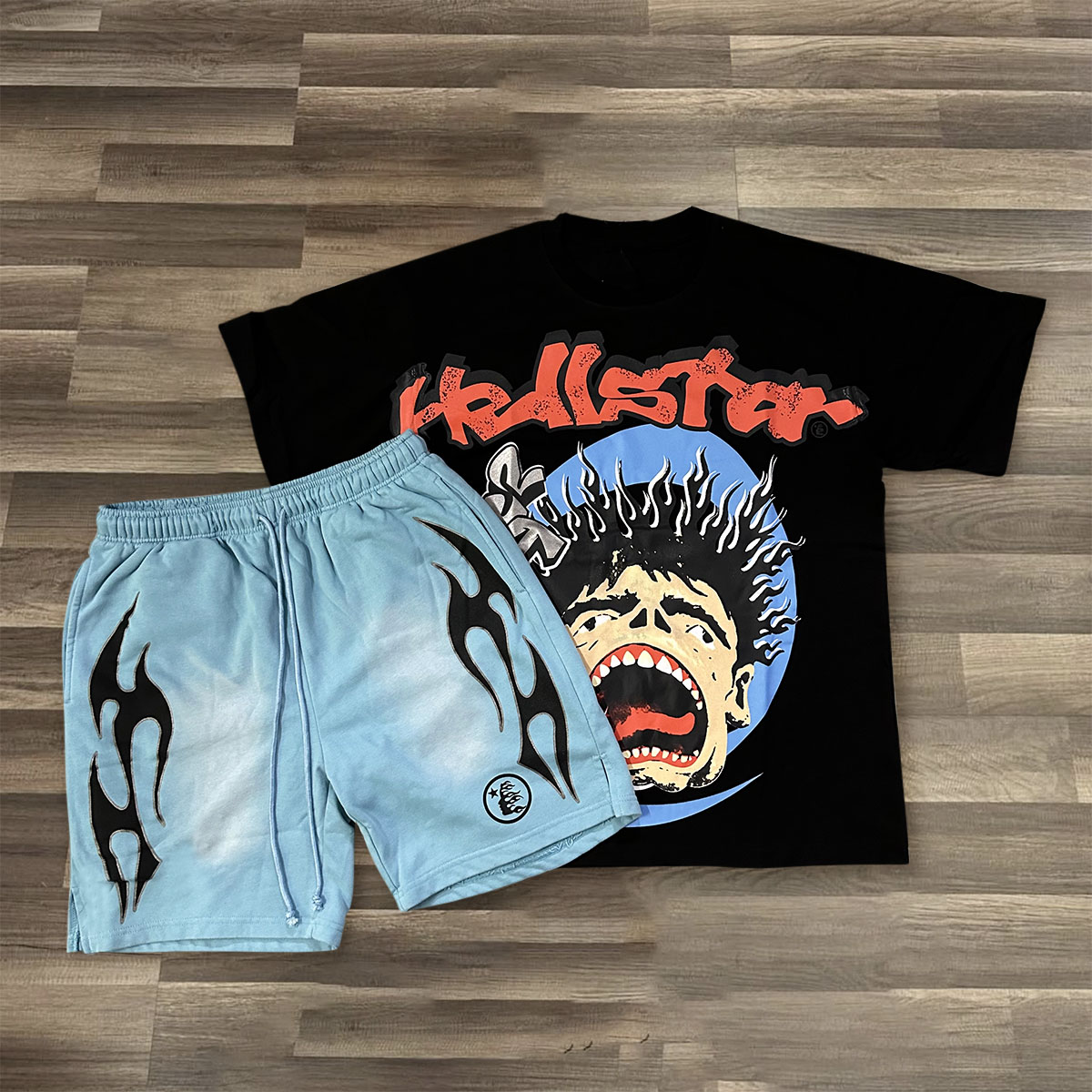 Screaming Kid Print T-shirt Shorts Two-Piece Set