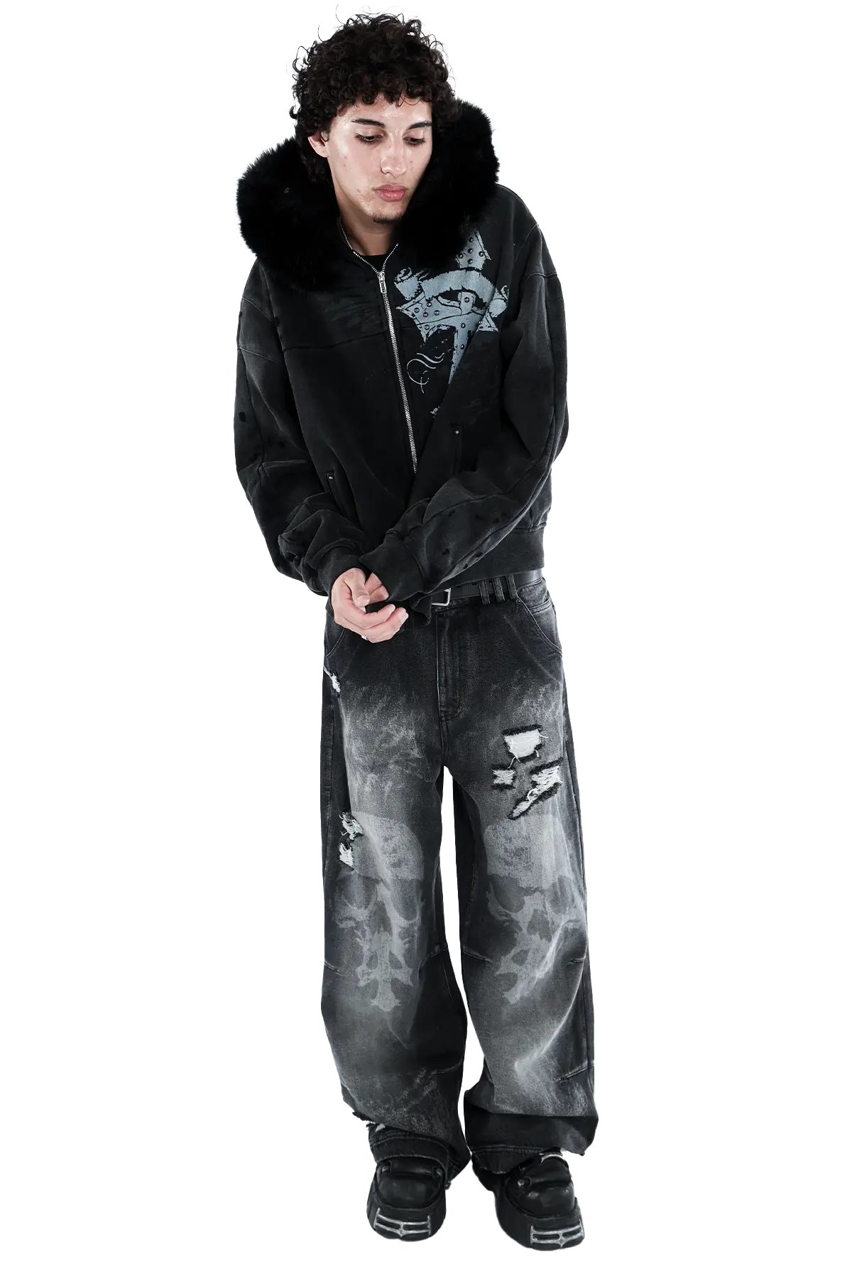 These mid-weight denim jeans are crafted for durability and everyday comfort, with premium cotton that feels great and lasts. Designed with a relaxed, baggy fit & a wide leg opening, they’re made to move with you. Finished with detailed screenprint that'll last life's roughest moments.
