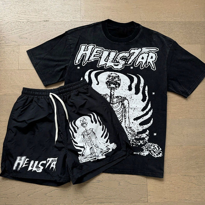 Skull Yoga Casual Street T-shirt Shorts Two-Piece Set