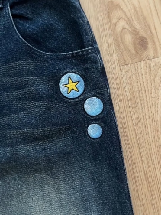 Baggy fit jeans.