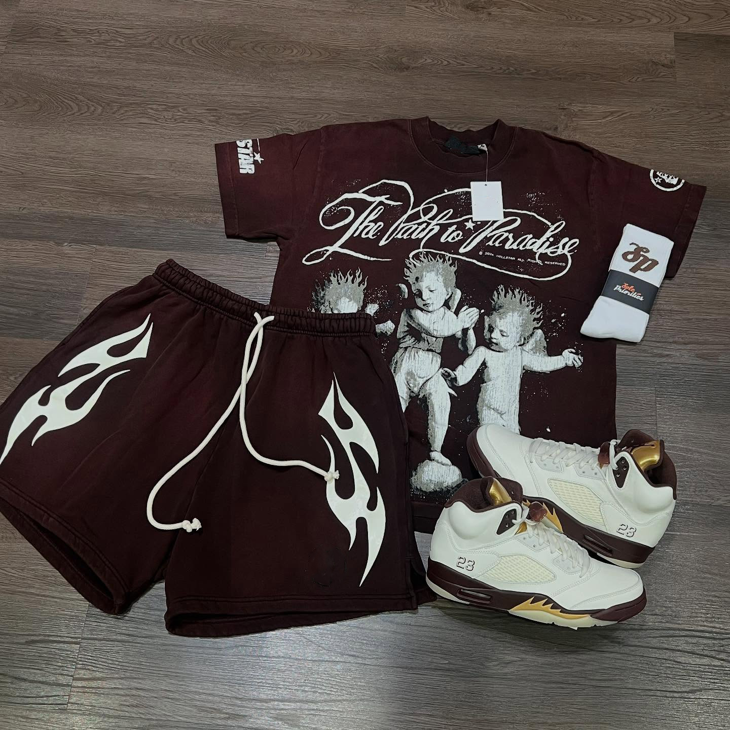 Son of Hell Casual Street Retro T-shirt Shorts Two-piece Set