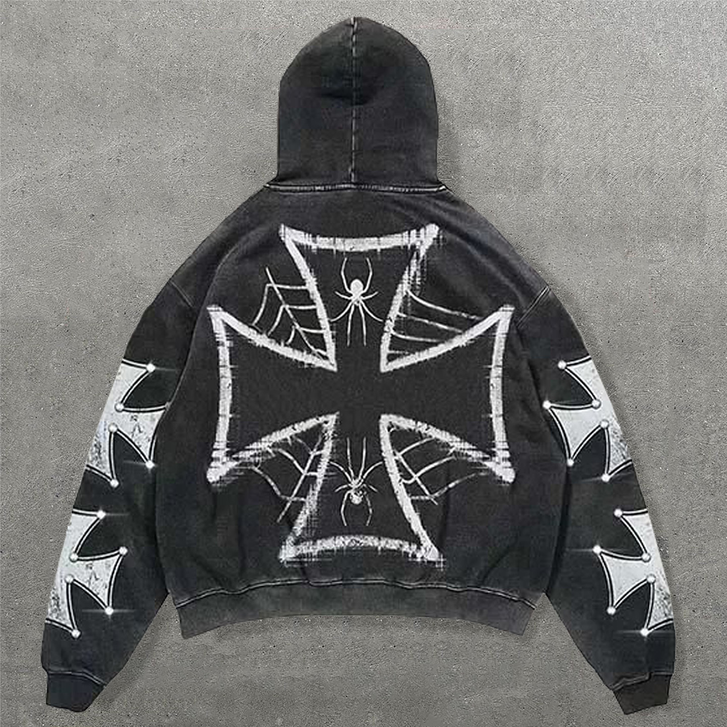 Spider Cross Letter Print Long Sleeve Hoodies