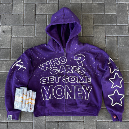 Starry casual street retro zip-up hoodie