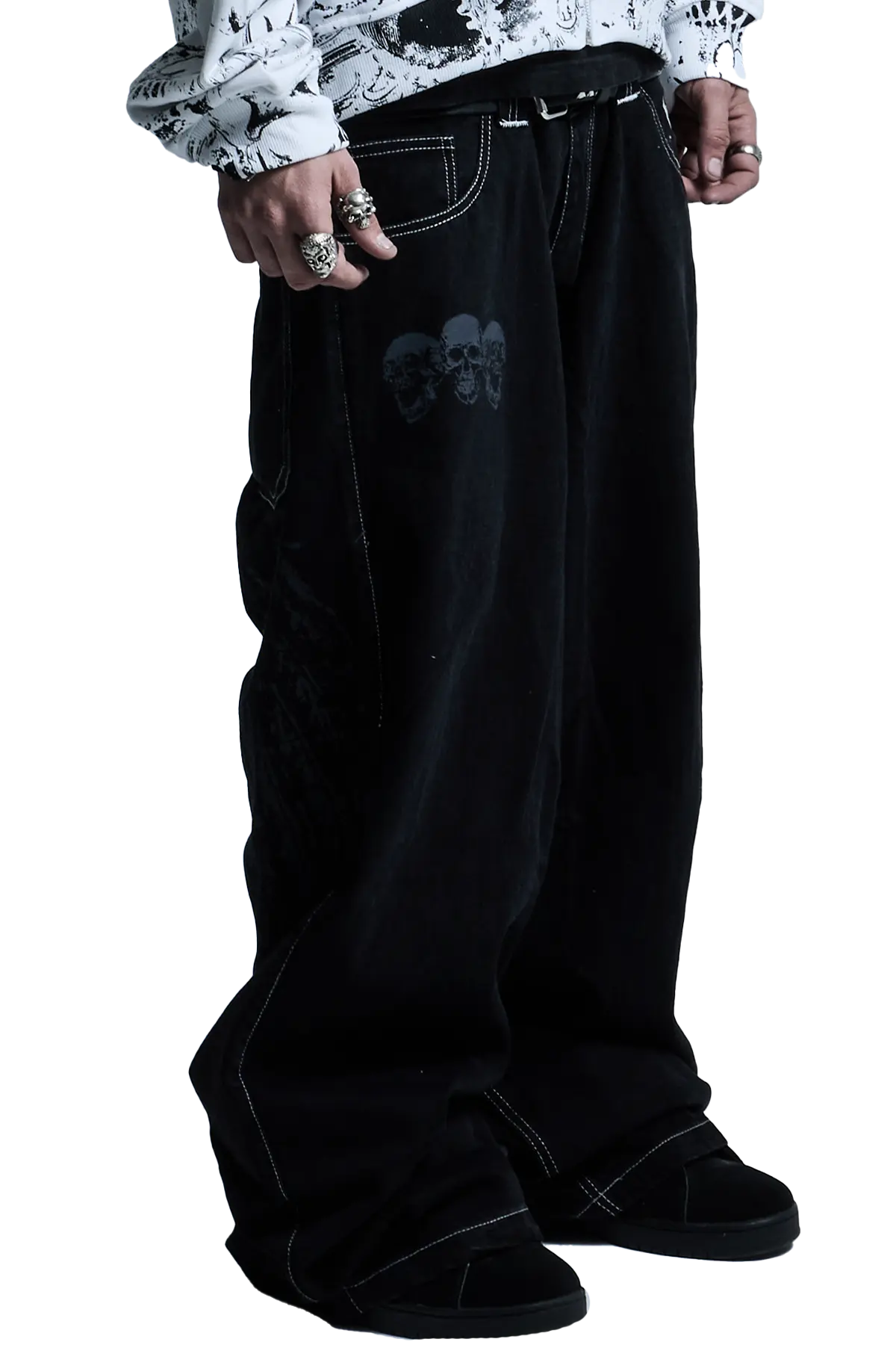 These mid-weight denim jeans are crafted for durability and everyday comfort, with premium cotton that feels great and lasts. Designed with a relaxed, baggy fit & a wide leg opening, they’re made to move with you. Finished with detailed screenprint that'll last life's roughest moments.