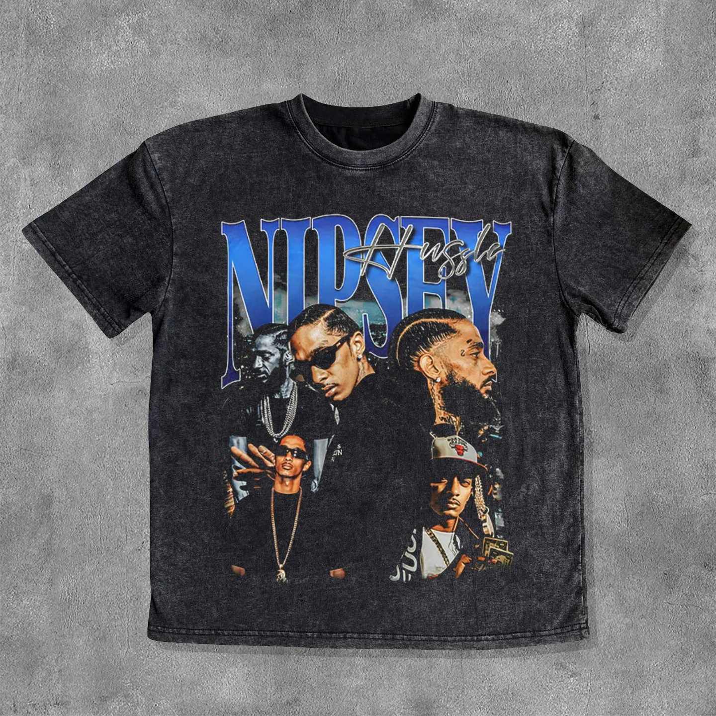 Stylish Character Letters Washed Distressed T-Shirt