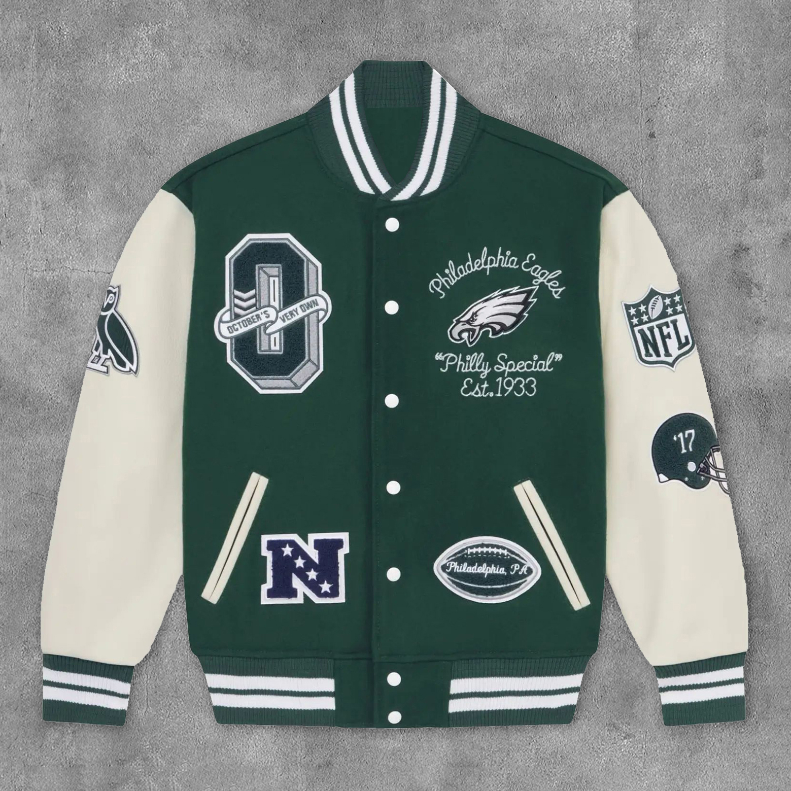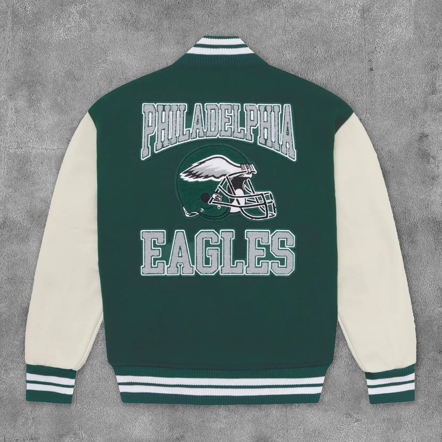 Stylish Eagles Print Long Sleeve Baseball Jacket