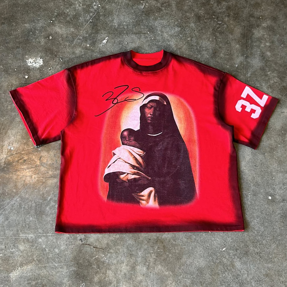 Stylish Mary Print Short Sleeve T-Shirt