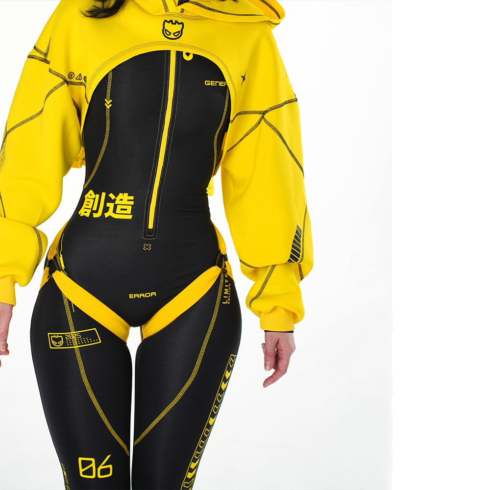 Stylish Yellow and Black Jumpsuit with Hoodie for All-Season Wear