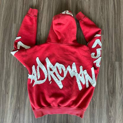 Stylish zippered hoodie with statement patches