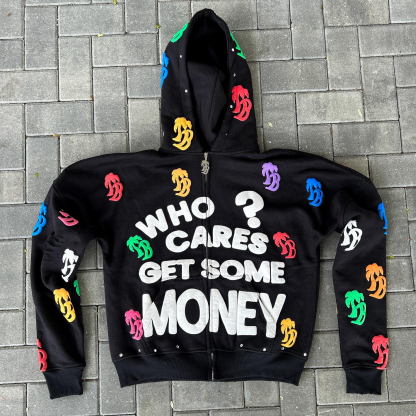Vintage Letter Print Zip-Up Hoodie Set