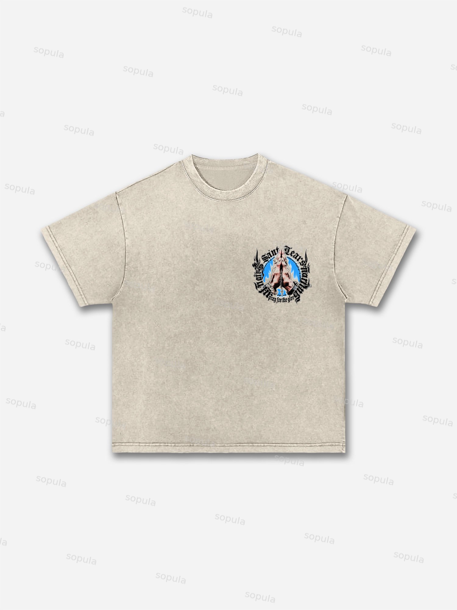 Vintage Pray For The Glory Graphic Print Acid Wash T-shirt