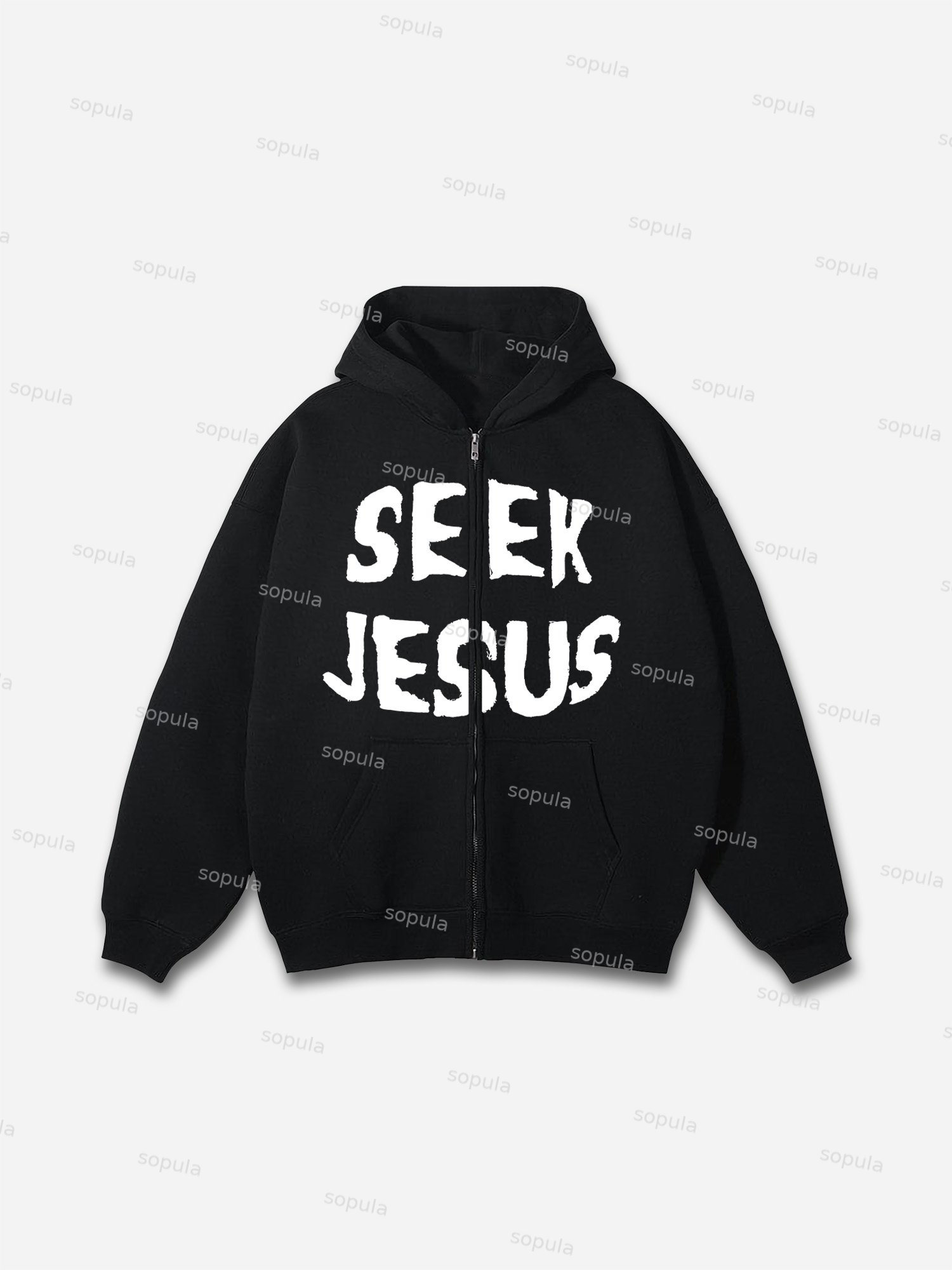 Sopula Vintage Seek Jesus Graphic Hip Hop Oversized Zip Up Hoodie