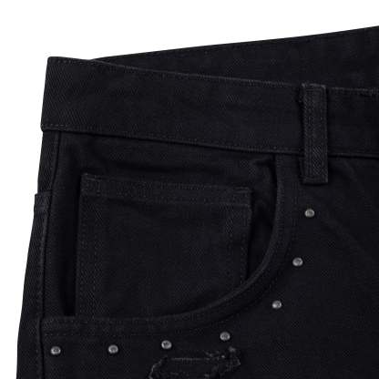 14,5oz denim / 100% cotton / embroidery on denim patches on front and back / embroidered leather patch / baggy fit