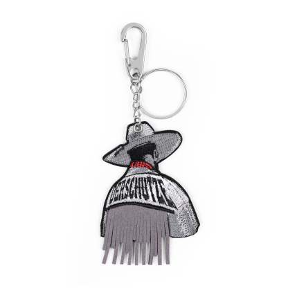 embroidered on front / back leather lining / with velvet suede leather tassels on front / measurements: 8,5cm x 6cm x 0,2cm