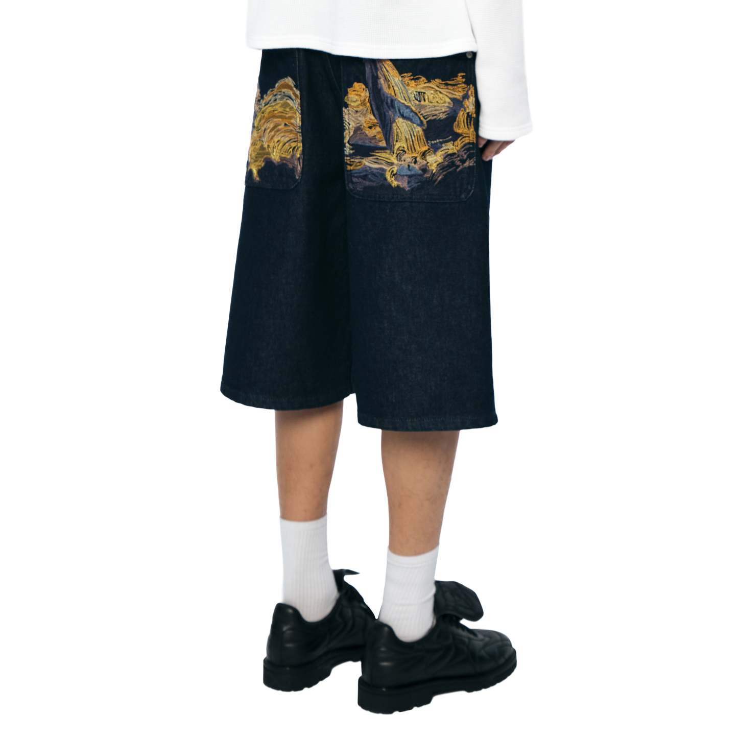 14,5oz denim / 100% cotton / embroidery on back pockets / embroidered leather patch / wash inside out / fits true to size