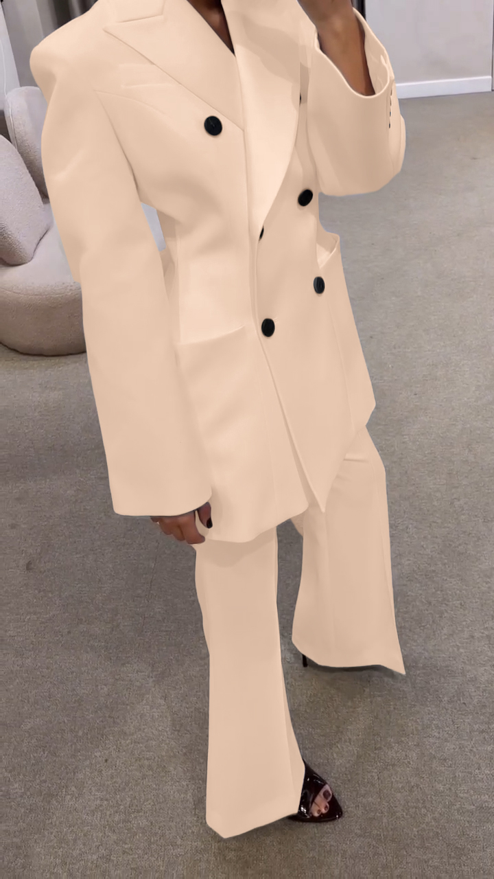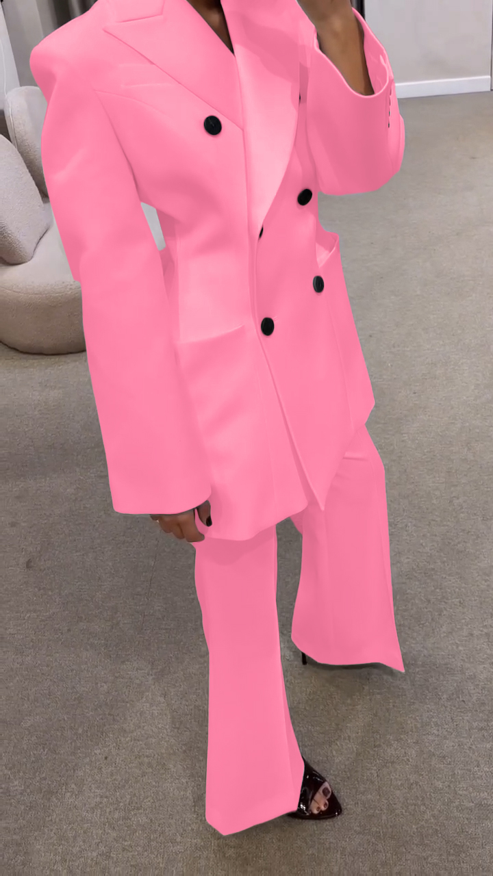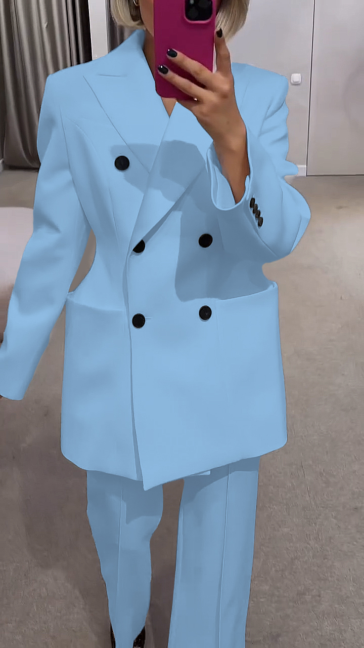 Women's Fashion Solid Color Collar Jacket and Pants Two Piece Set