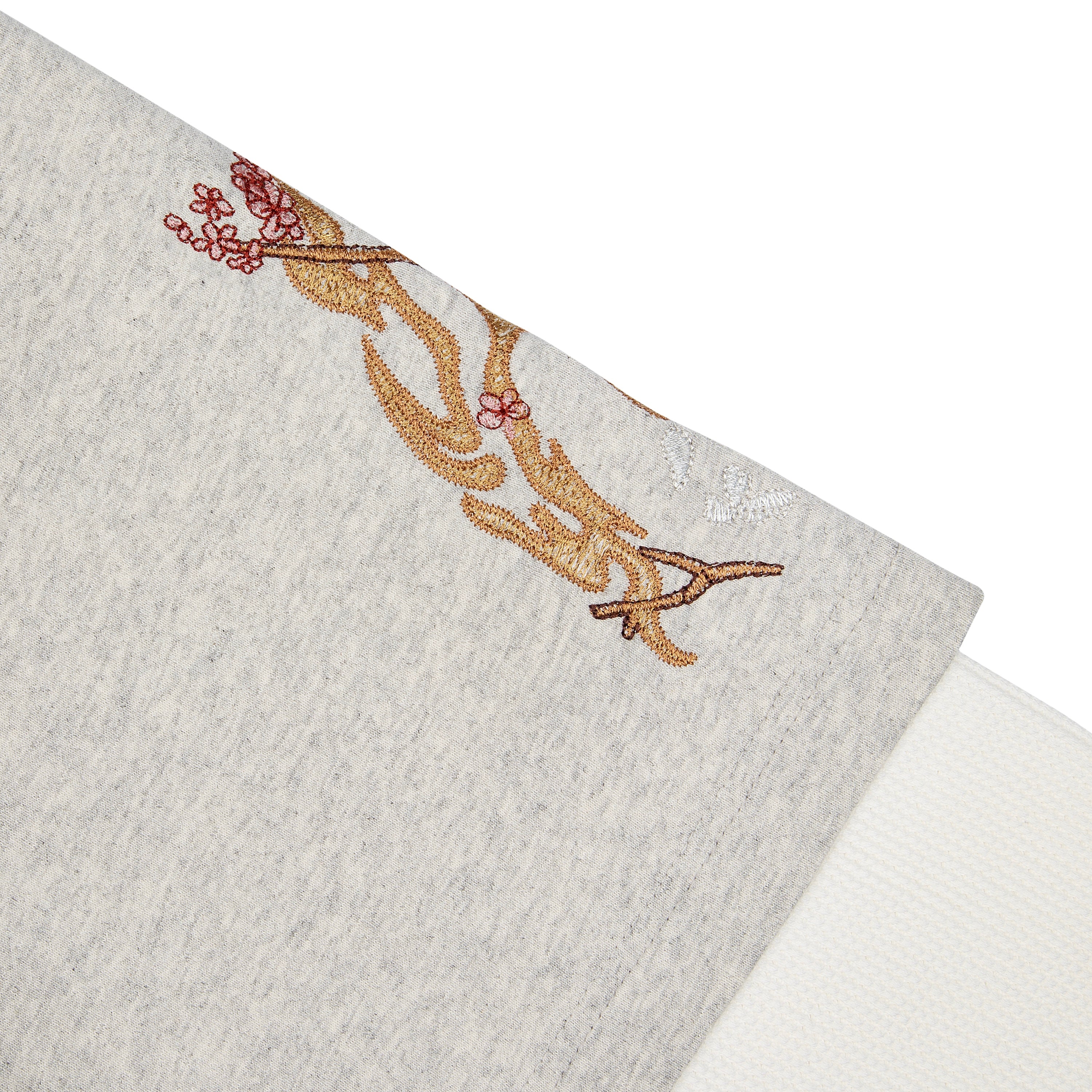 260gsm fabric / 100% preshrunk cotton / waffle sleeves (100% cotton) / embroidery on back and sleeves / fits true to size
